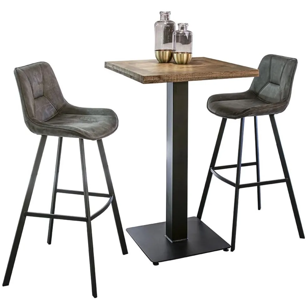 Barkruk met microleder zitting graphite en zwart metalen poot