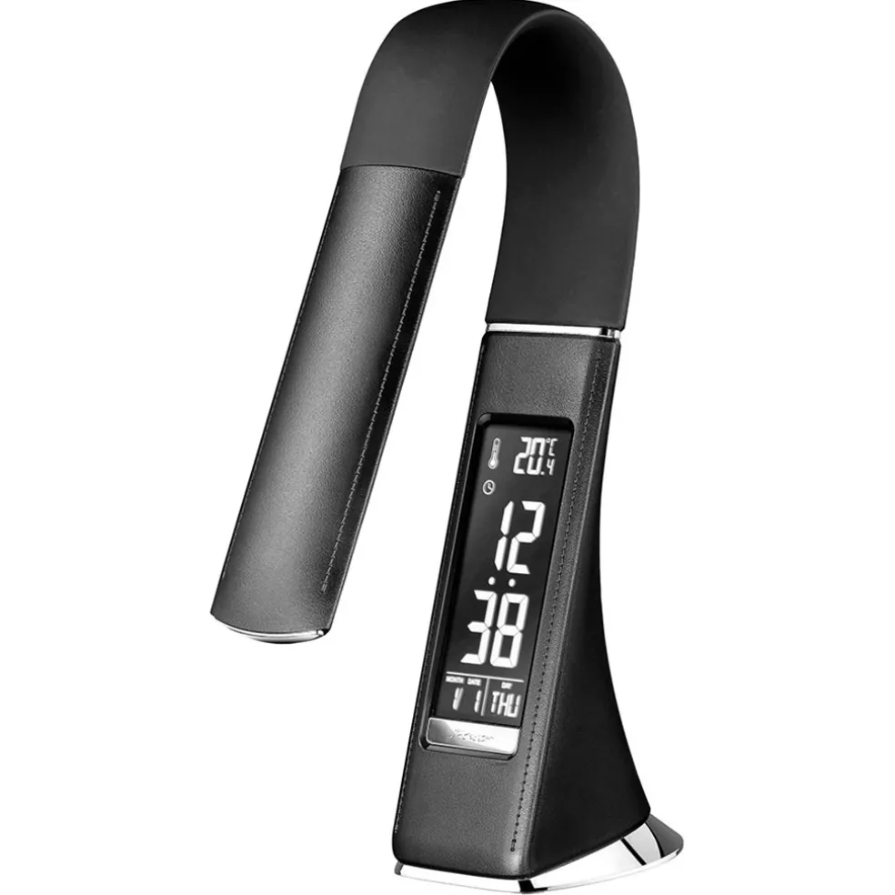 Een multifunctionele tafellamp. Deze design bureaulamp is van meerdere gemakken voorzien. De lamp is voorzien van LED en een touchdimmer die de lamp in 3 standen kan dimmen. Ideaal wanneer u de lamp gebruikt als bureaulamp. Het armatuur is te verstellen door deze te kantelen en draaien zodat de verlichting altijd naar de gewenste kant kan schijnen. Het armatuur heeft een ingebouwd scherm met daarop een tijd-, datum- en temperatuuraanduiding. Daarnaast heeft de moderne tafellamp ook een ingebouwde alarmfunctie. De design tafellamp is afgewerkt met leder en werkt via stroom met een USB kabel en stekker. Mocht de stroom uitvallen dan blijft de klok branden doordat deze wordt opgevangen door een batterij. De lamp werkt hier echter niet op. Een ideale multifunctionele tafel/bureaulamp die in 3 kleuren is te verkrijgen.