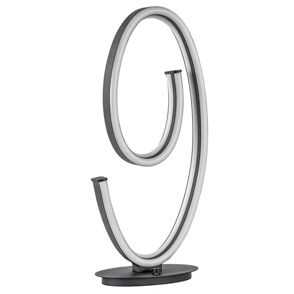 Strakke en sierlijke tafellamp met energiezuinige LED verlichting. Deze moderne tafellamp heeft twee LED ringen. In de binnenkant van het armatuur en aan de rand. Dit zorg voor een mooie lichtverspreiding. De LED tafellamp wordt geleverd inclusief snoer van 170 cm. De dimknop/schakelaar bevindt zich op het armatuur zelf. De tafellamp is uitgevoerd in het mat zwart.
