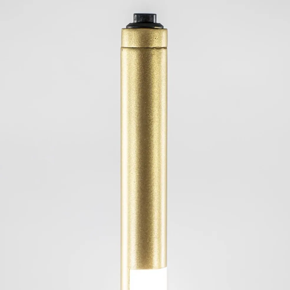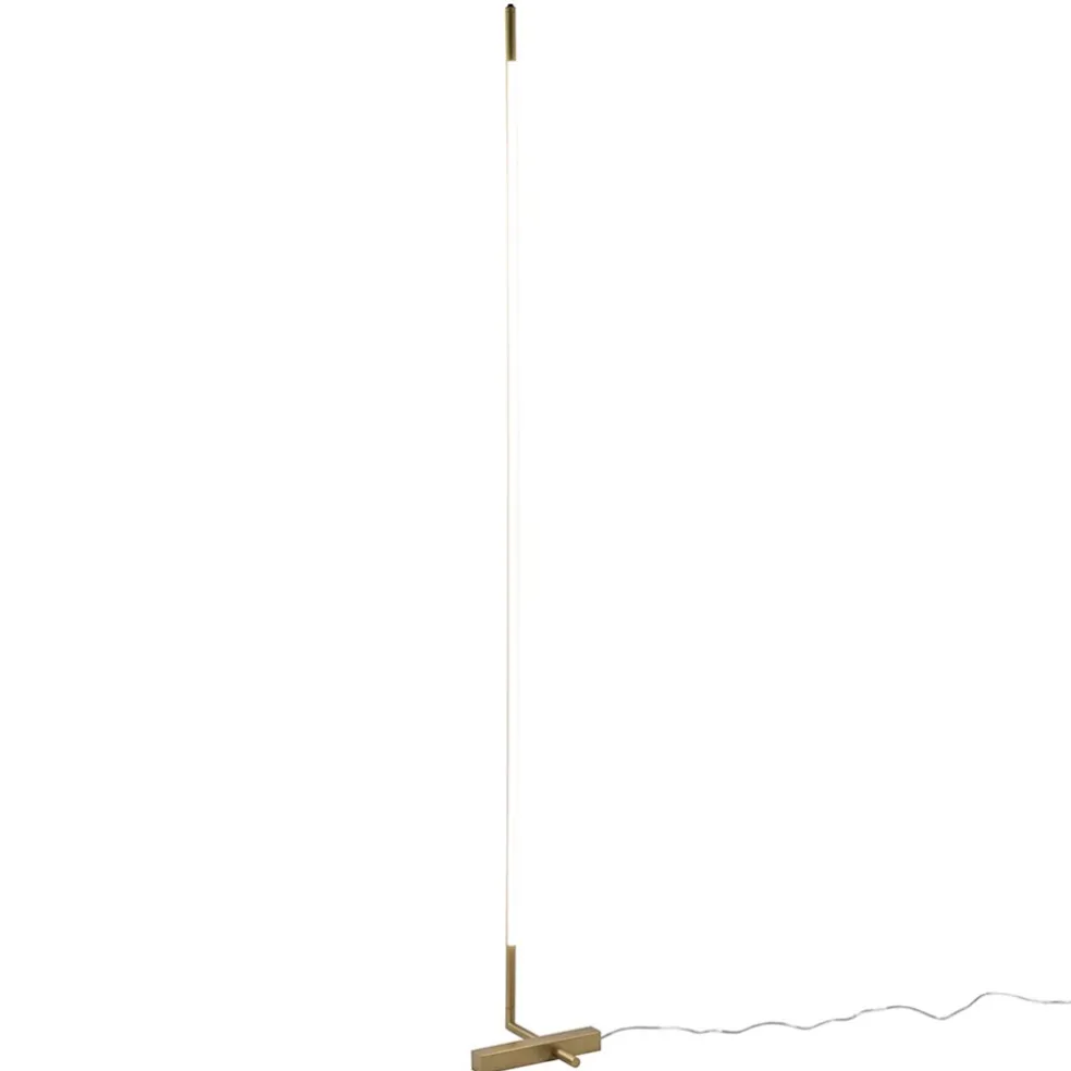 Een strak design met een sfeervol effect. Deze vloerlamp heeft een minimalistisch ontwerp maar valt wel degelijk op wanneer deze wordt ingeschakeld. De gouden vloerlamp is in het armatuur voorzien van een LED strip welke naar wens kan worden gedraaid. Zo kunt u een mooie indirecte lichtverspreiding in de ruimte maken door de lamp naar de muur te richten. Ook kunt u de verlichting dimmen dmv de dimmer op het armatuur. Houdt deze ingedrukt totdat u de juiste intensiteit heeft. De gouden LED vloerlamp heeft een transparant snoer met een lengte van 230 cm.