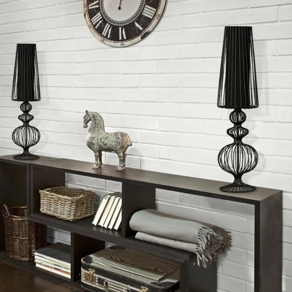 Grote draad tafellamp met zwarte kap