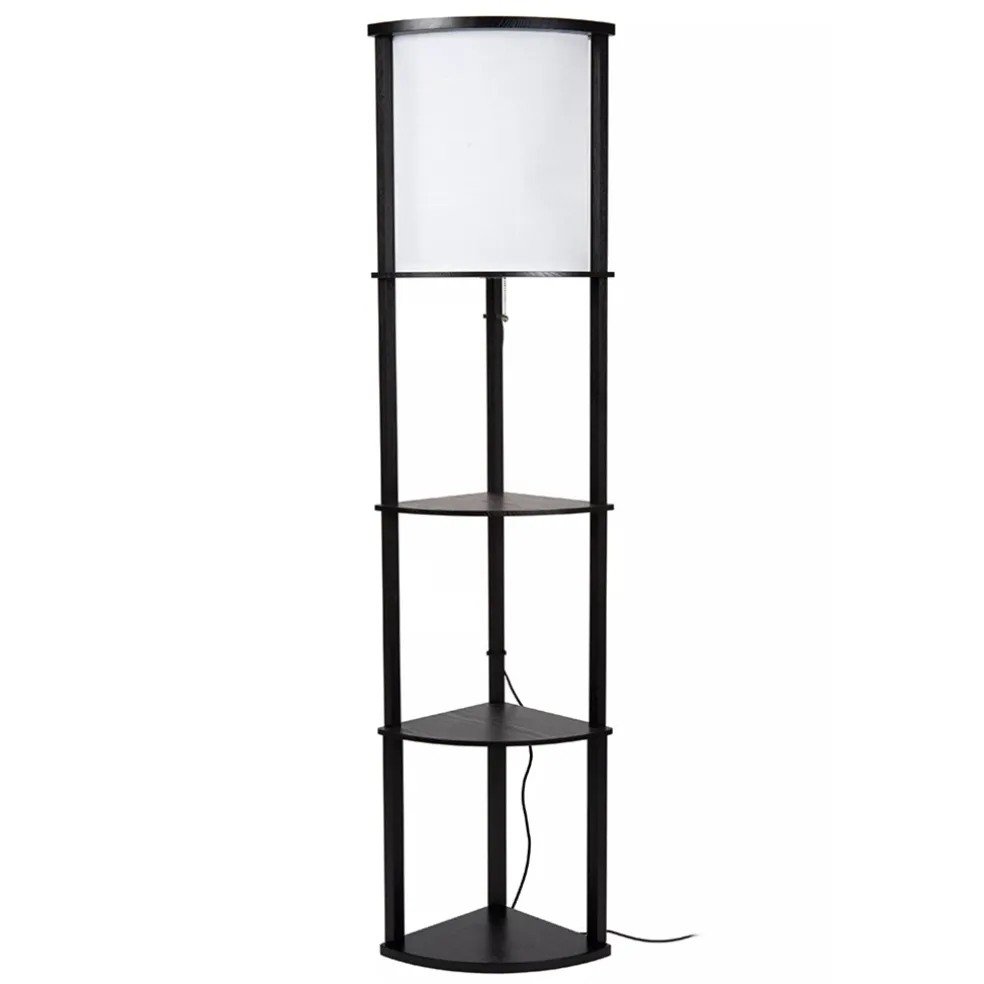 Deze sfeervolle vloerlamp is gemaakt van hoogwaardig mdf en uitgevoerd in het mat zwart. Dit is mooi gecombineerd met een beige kantoenen kap die zorgt voor diffuus licht in de ruimte. Door de driehoekige vorm is de vloerlamp perfect toe te passen in een lege hoek in de kamer. De plankjes zijn prima geschikt om wat leuke accessoires, plantjes of boeken op neer te zetten. De zwarte vloerlamp met kap is voorzien van een snoer met een lengte van 180 cm en wordt gemakkelijk aan en uit geschakeld dmv de nostalgische trekschakelaar onder de kap.