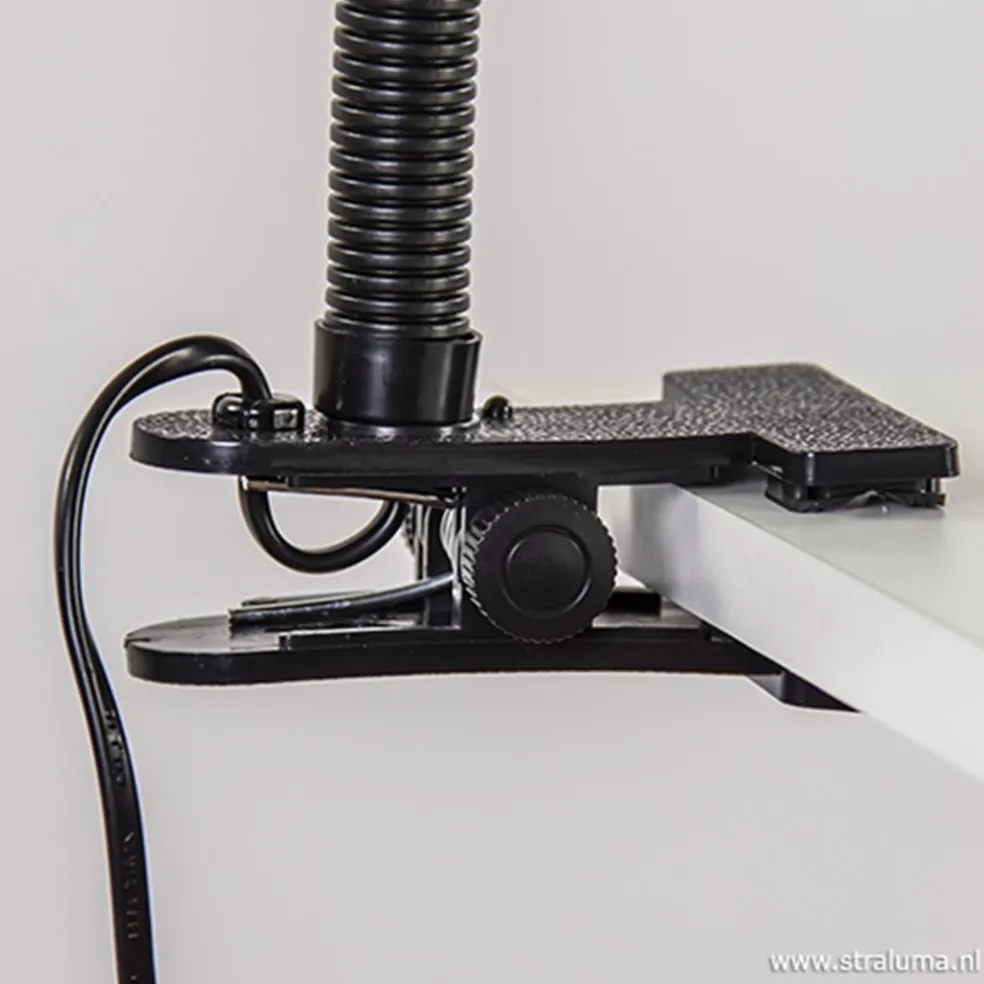 Deze klemlamp heeft een knijpwijdte van 3 cm waardoor de functionele lamp gemakkelijk kan dienen als bureau-, tafel- of leeslamp. Door de flexibele arm schijnt de klemspot altijd de gewenste richting op. De klemlamp is voorzien van een zwart snoer met schakelaar en is verkrijgbaar in 4 kleuren, wit, zwart, zwart/zilvergrijs en rood/blauw/groen. Handig voor op het bureau, in de tienerkamer, als bedlampje of in de kinderkamer.