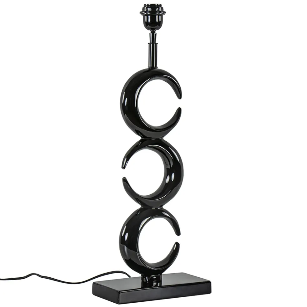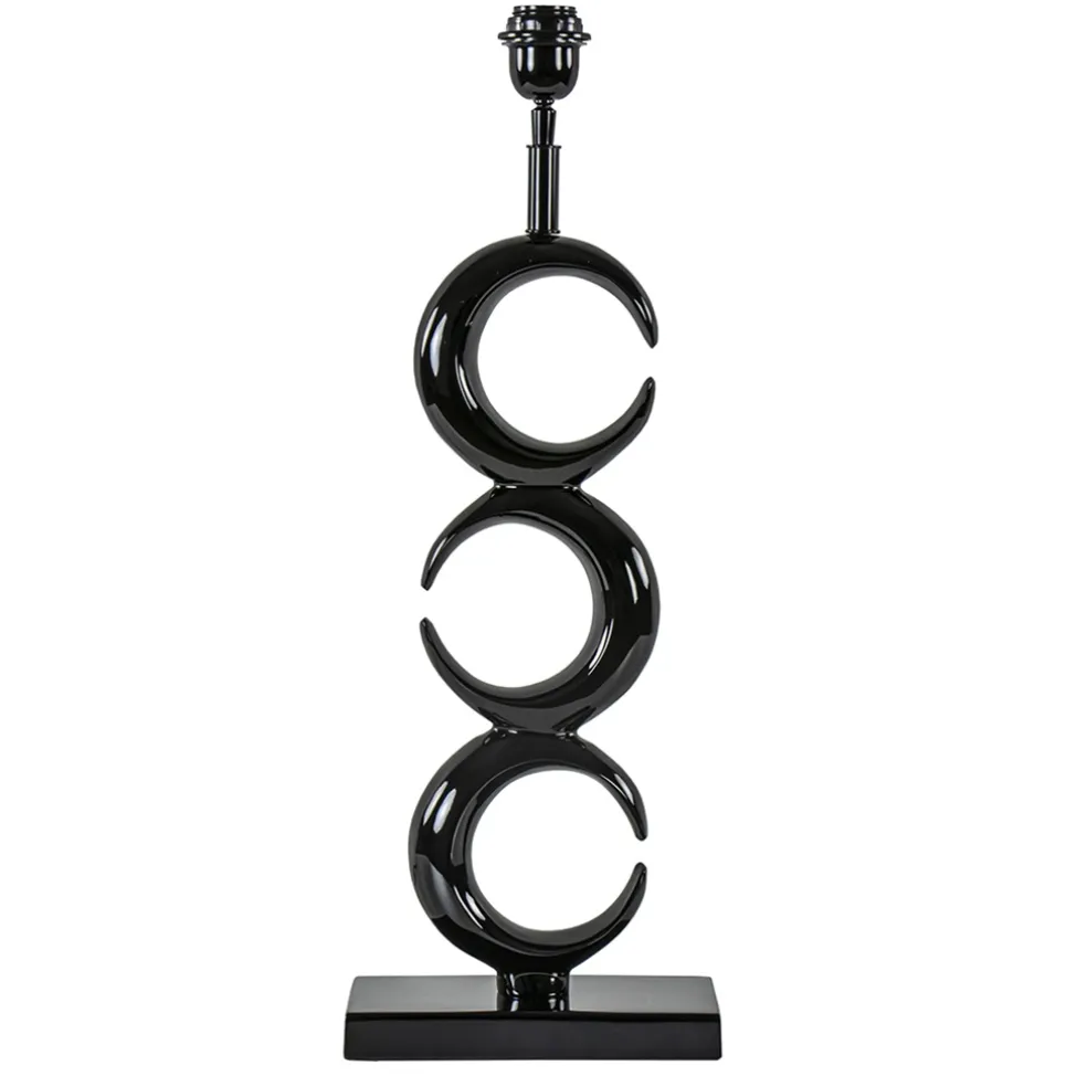 De lampvoet Maan doet zijn naam eer aan met de drie maantjes die speels op elkaar zijn geplaatst. Deze worden aan de onderzijde ondersteund door een rechthoekige voet en zijn aan de bovenzijde voorzien van een E27 fitting. De fitting heeft een kogelgewricht zodat u de kap gemakkelijk recht kunt plaatsen. De kap is verder exclusief. Zo kunt u de lampvoet helemaal naar wens samenstellen. Lampvoet Maan van Light and Living is uitgevoerd in het shiny zwart en voorzien van een zwart snoer van 165 cm.
