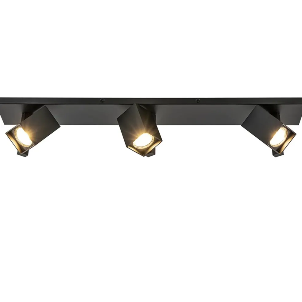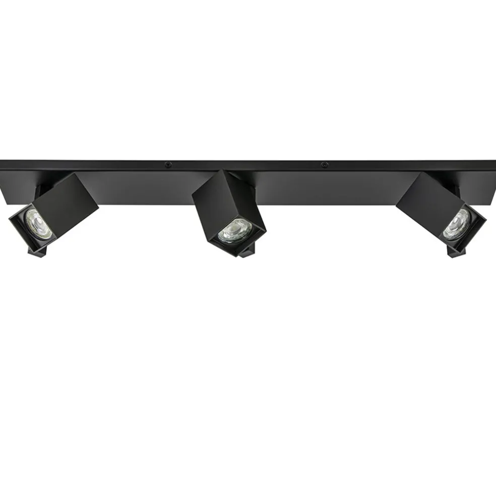 Langwerpige 3L opbouwspot met vierkante spots zwart