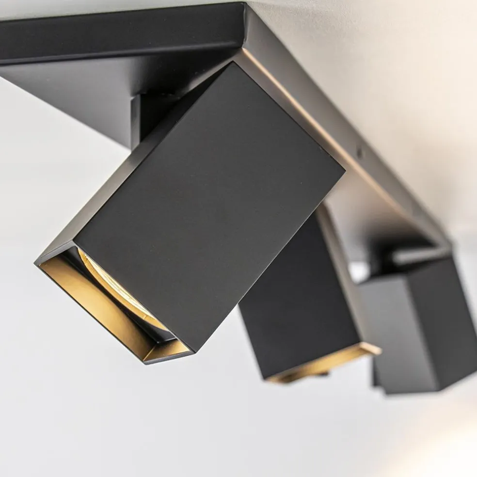 Strak van design en functioneel in gebruik. Deze vierkante opbouwspot is een unieke in zijn soort. Veelal zijn de spots rond maar deze is uitgevoerd in het vierkant/rechthoekig. De spots hebben een afmeting van 5,5×5,5 cm en is 8,5 cm hoog. De spots zijn bevestigd op een smal pootje. De rechthoekige spots kunnen kantelen en het pootje kan draaien. Zo kunt u de 3-lichts plafondlamp helemaal naar wens stellen. Ideaal voor in een hal of slaapkamer. De langwerpige opbouwspot is volledig gemaakt van metaal en voorzien van een mat zwarte finish. De plafondspot is dimbaar middels een externe dimmer (exclusief) en wordt geleverd exclusief lichtbronnen.