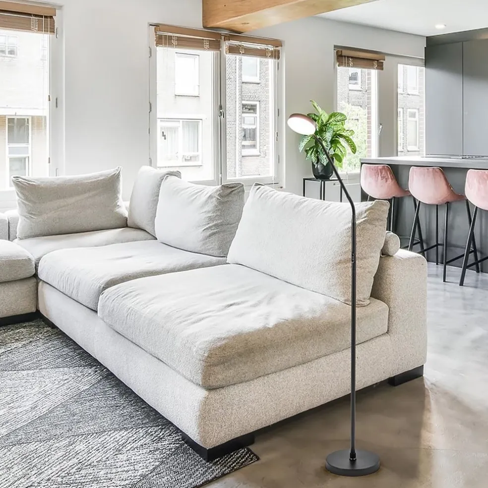 Functioneel, sfeervol en strak van design. Deze moderne vloerlamp heeft het allemaal. Het slanke armatuur geeft de lamp een strakke look die door de mat zwarte uitvoering mooi wordt versterkt. Het meest ideale aan de leeslamp is dat deze op accu werkt. Geen losse snoeren door de woonkamer dus, maar neerzetten waar u wenst. De zwarte leeslamp is voorzien van een oplaadbare accu welke binnen ca 5 uur is opgeladen en een brandtijd biedt van 7 uur. De staande lamp heeft een verstelbaar armatuur die onder andere in hoogte is te verstellen en waarbij de kap kan kantelen en draaien. De leeslamp heeft verder LED verlichting welke dimbaar is dmv de pushdimmers op het armatuur. Bepaal gemakkelijk de juiste kleurtemperatuur en intensiteit met een druk op de knop. Ideaal voor het lezen van een boek, of het creëren van een gezellige sfeer. Deze LED leeslamp kan het allemaal.