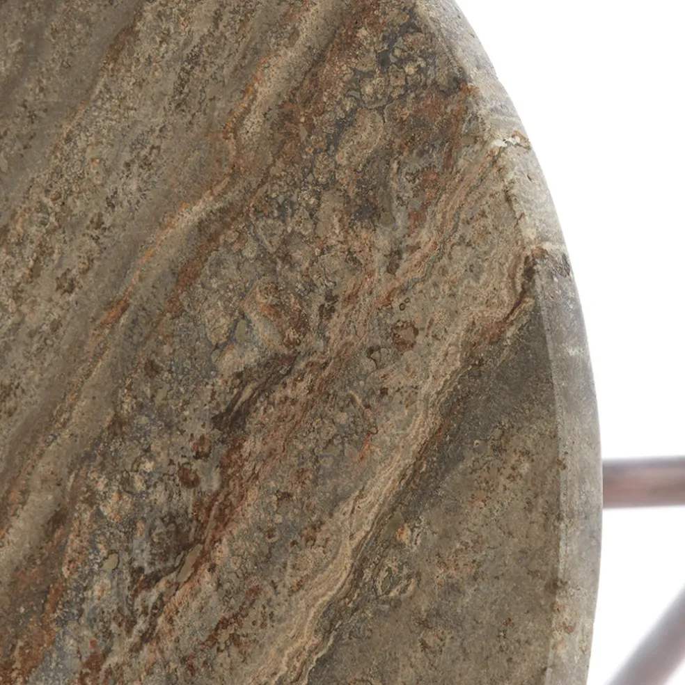 Deze trendy bijzettafel set van 2 maakt het interieur helemaal af. De tafeltjes hebben een unieke look omdat deze zijn gemaakt van travertin steen. Het stenen blad wordt ondersteund door slanke metalen pootjes in het antiek brons. Een leuke combinatie die prima geschikt is voor diverse woonstijlen.