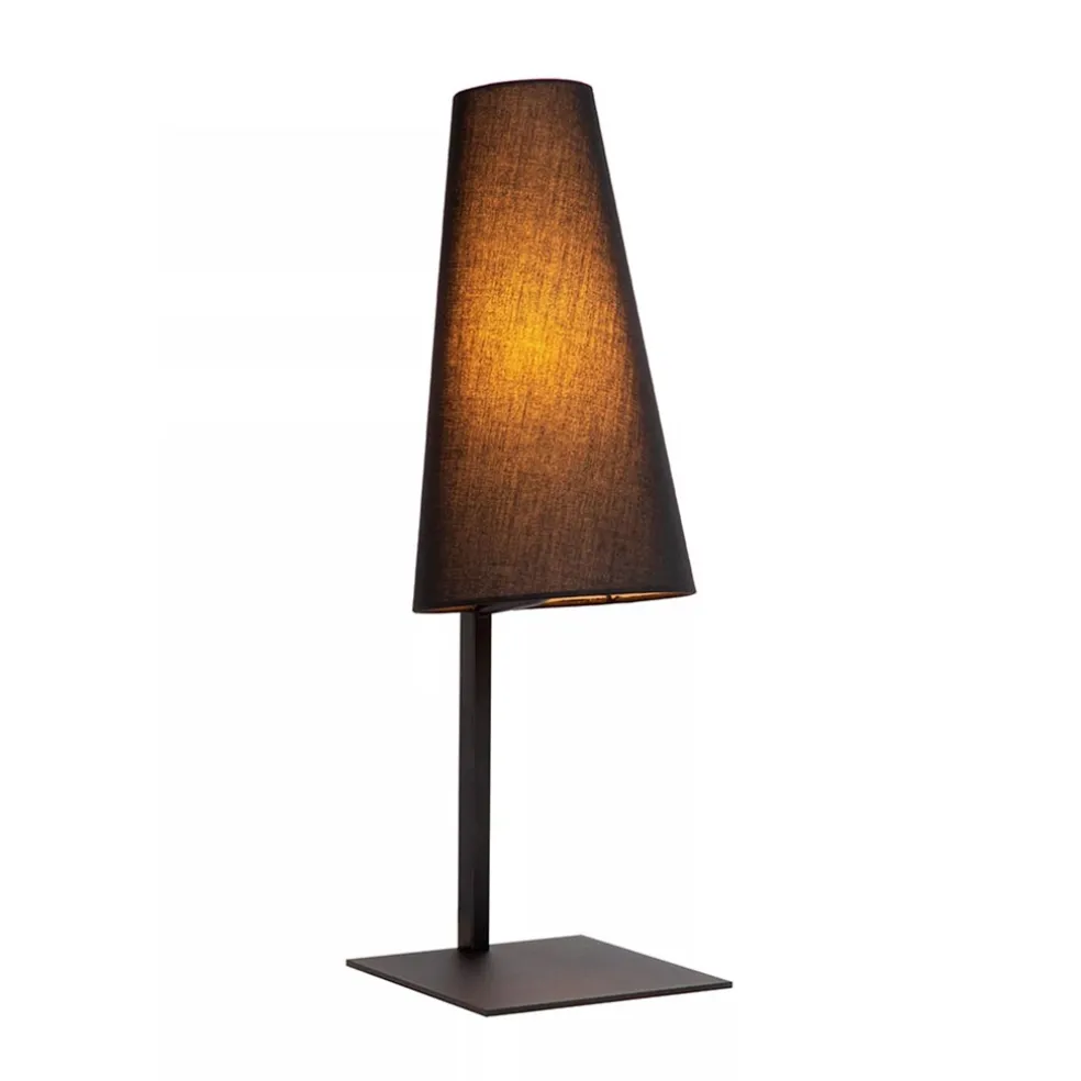 Strakke en elegante tafellamp. Deze leuke tafellamp wordt inclusief linnen kap geleverd. Zowel de kap als het armatuur zijn zwart. Het fijne van de kap is dat er niet rechtstreeks in de lichtbron kan worden gekeken en toch genoeg licht kan verspreiden voor een fijne sfeer. De moderne tafellamp is voorzien van een zwart snoer van 175 cm met een schakelaar op 30 cm van het armatuur. De tafellamp wordt exclusief lichtbron geleverd (E27).