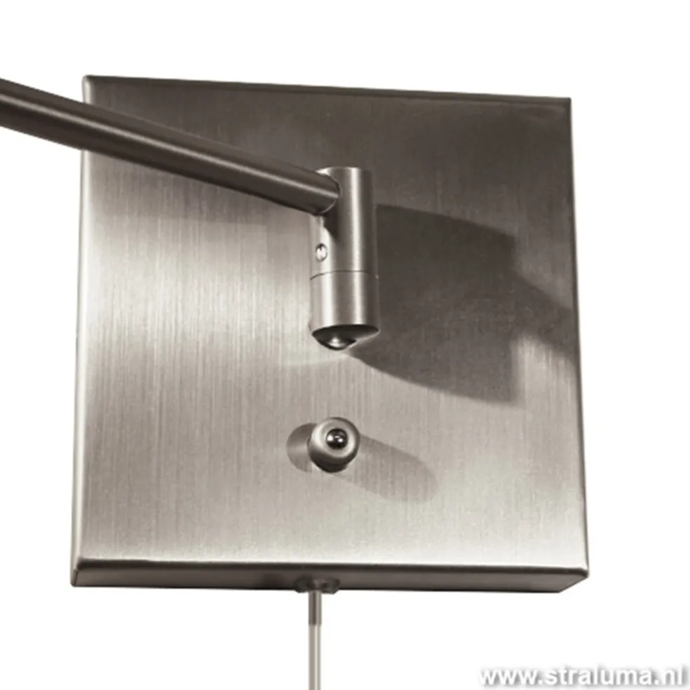 Prachtig afgewerkte moderne wandlamp uitgevoerd met LED verlichting. Ideaal voor naast een bank, fauteuil of naast het bed als leeslamp. De dimmer op het wandarmatuur zorgt ervoor dat u vanuit de luie stoel of bed de lamp in elke gewenste lichtsterkte kunt instellen. Deze LED leeslamp is zeer energiezuinig en verbruikt maar 4,5 watt. Door de stangen en scharnieren kunt u deze moderne bedlamp tot maximaal 62 cm uittrekken. De kop kunt u draaien en kantelen.