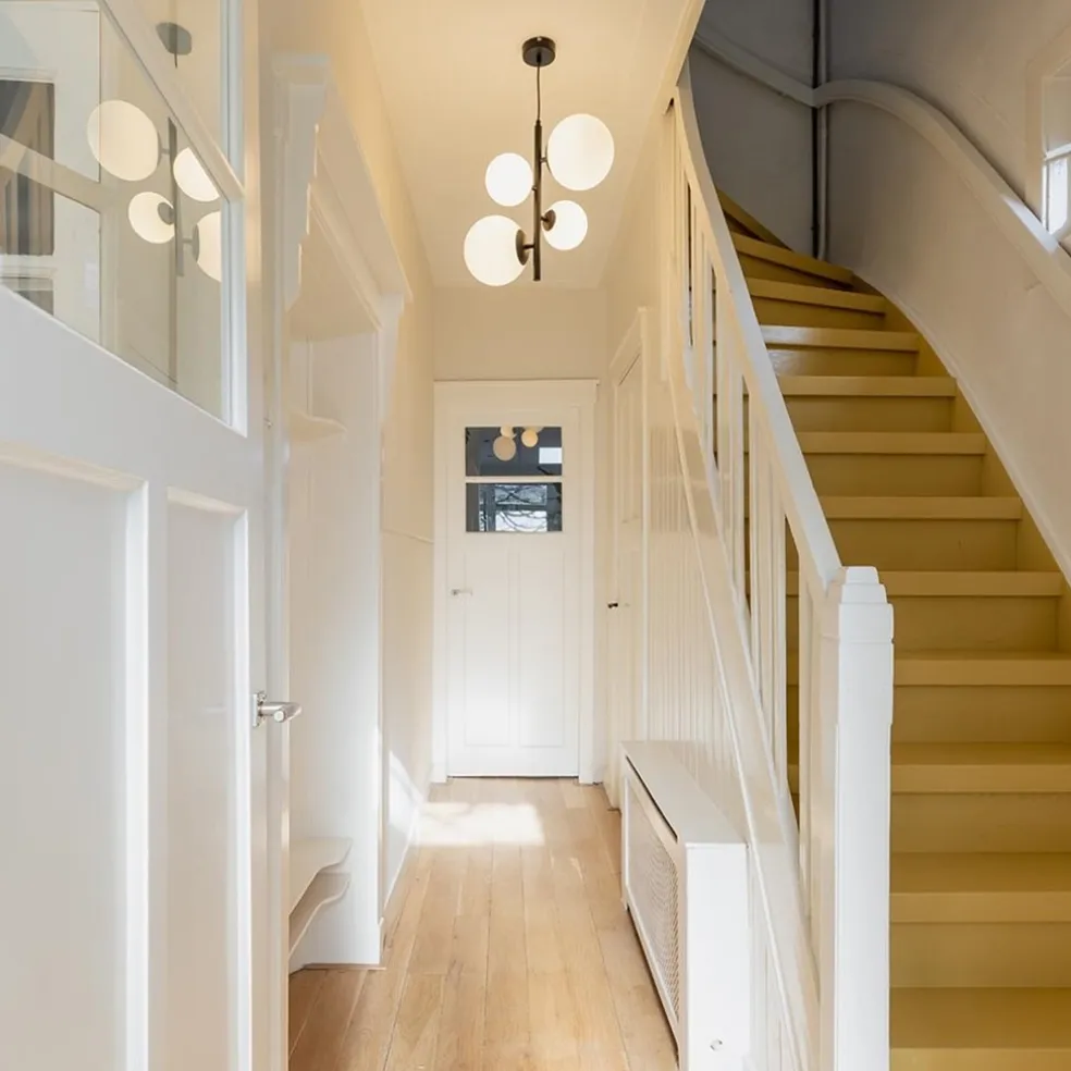 Retro in een modern jasje. Deze 4-lichts hanglamp is een mooie toevoeging aan het interieur. De hanglamp bestaat uit een zwart armatuur waar 4 opaal glazen bollen op zijn bevestigd. De witte bollen geven de lamp echt die retro look. De 4-lichts hanglamp past mooi boven een ronde tafel of in de hal of slaapkamer. Waar de lamp ook hangt, hij zorgt voor een goede verlichting. De hanglamp is verstelbaar in hoogte met een maximale hoogte van 130 cm. De ronde lamp met witte bollen wordt ook met een ronde bevestiging opgehangen.