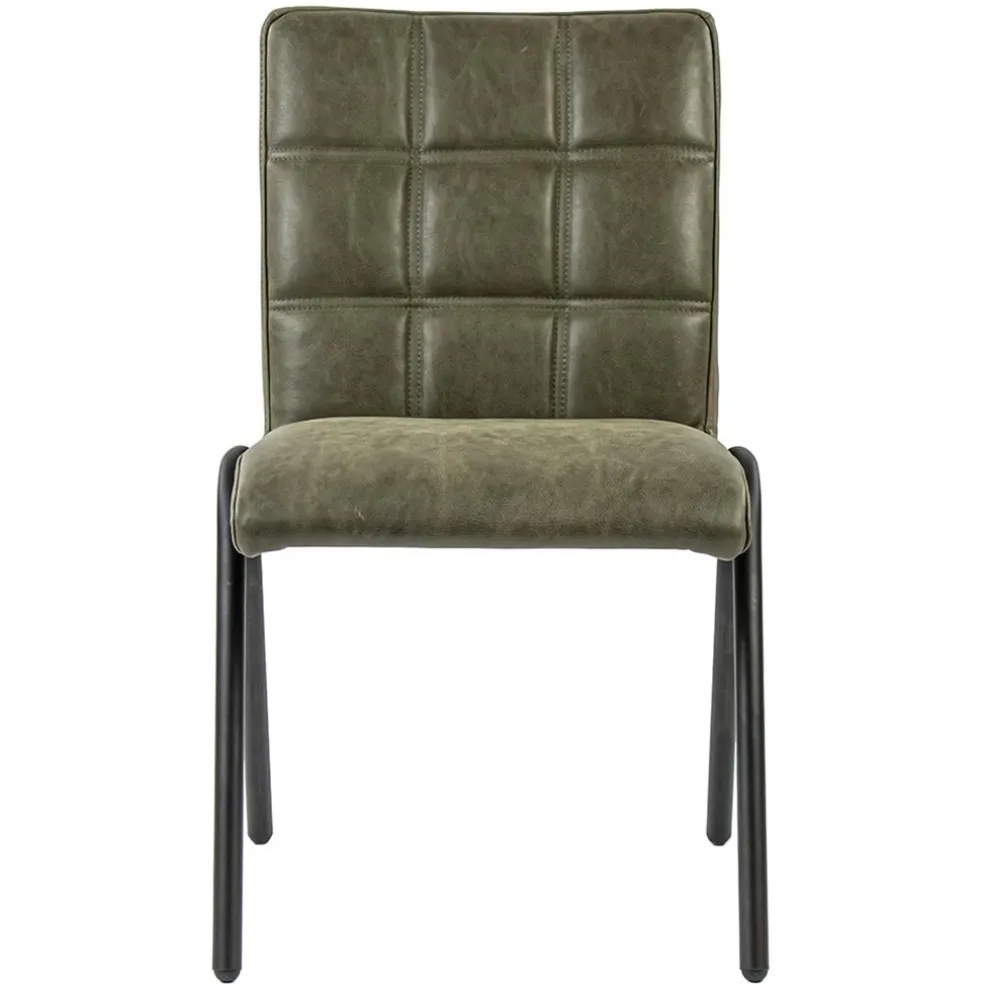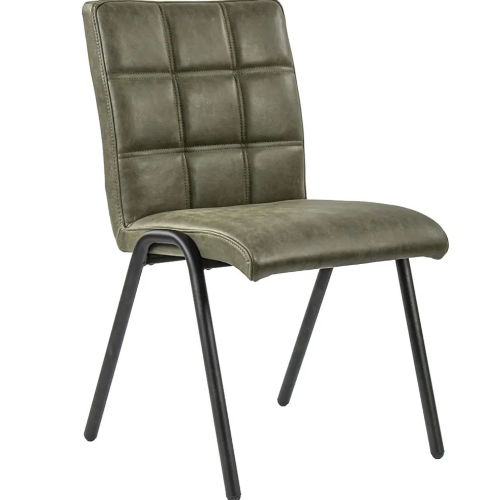 Olijf groene eettafelstoel leder met zwarte pootjes