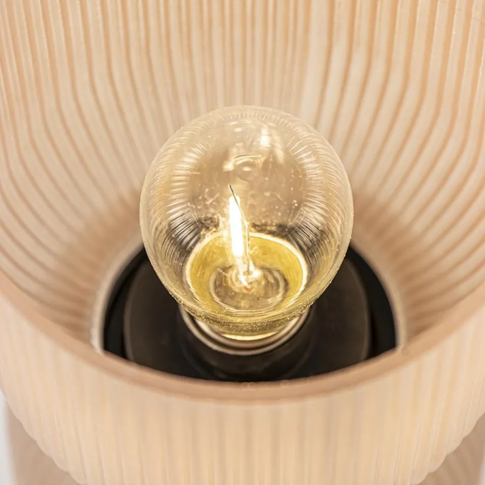 Tafellamp gemaakt van oud-roze ribbelglas. Het tafellampje heeft de vorm van een diabolo. Bij de voet is het ribbelglas mat, het bovenste deel van het glas heeft een subtiele glans. Prachtig op een slaapkamer, op de salontafel of een tiener of studentenkamer. Dit lampje werkt op 2x AAA batterijen, dus het is overal te gebruiken. Mooi in een landelijk, romantisch of Scandinavisch interieur.