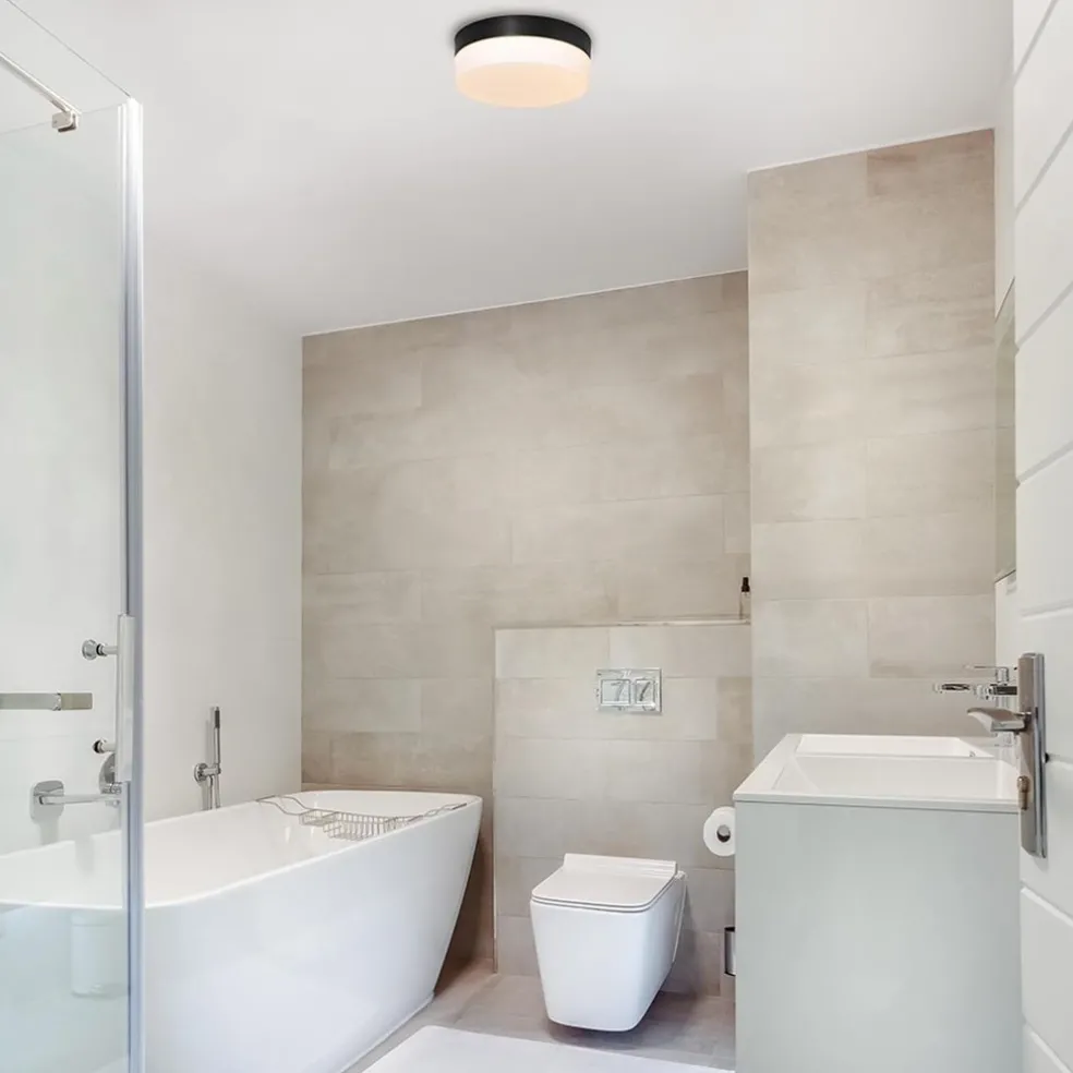 Ideaal voor een toilet, badkamer of de hal. Deze plafondlamp is IP44 goedgekeurd en daardoor geschikt voor diverse ruimtes. De ronde plafonnière is voorzien van LED verlichting welke dimbaar is middels een 3-standen functie. Deze werkt gemakkelijk met de gewone wandschakelaar. Schakel snel tussen de scenes door de schakelaar meerdere malen over te halen. Er is dus geen externe dimmer nodig. De kleine plafondlamp heeft een mat zwarte metalen bevestiging die is gecombineerd met wit glas. De glazen kap zorgt voor diffuus licht en dat er niet in de lichtbron kan worden gekeken. De combinatie van het matte zwart en het witte glas maakt de LED plafondlamp prima geschikt voor diverse woonstijlen.
