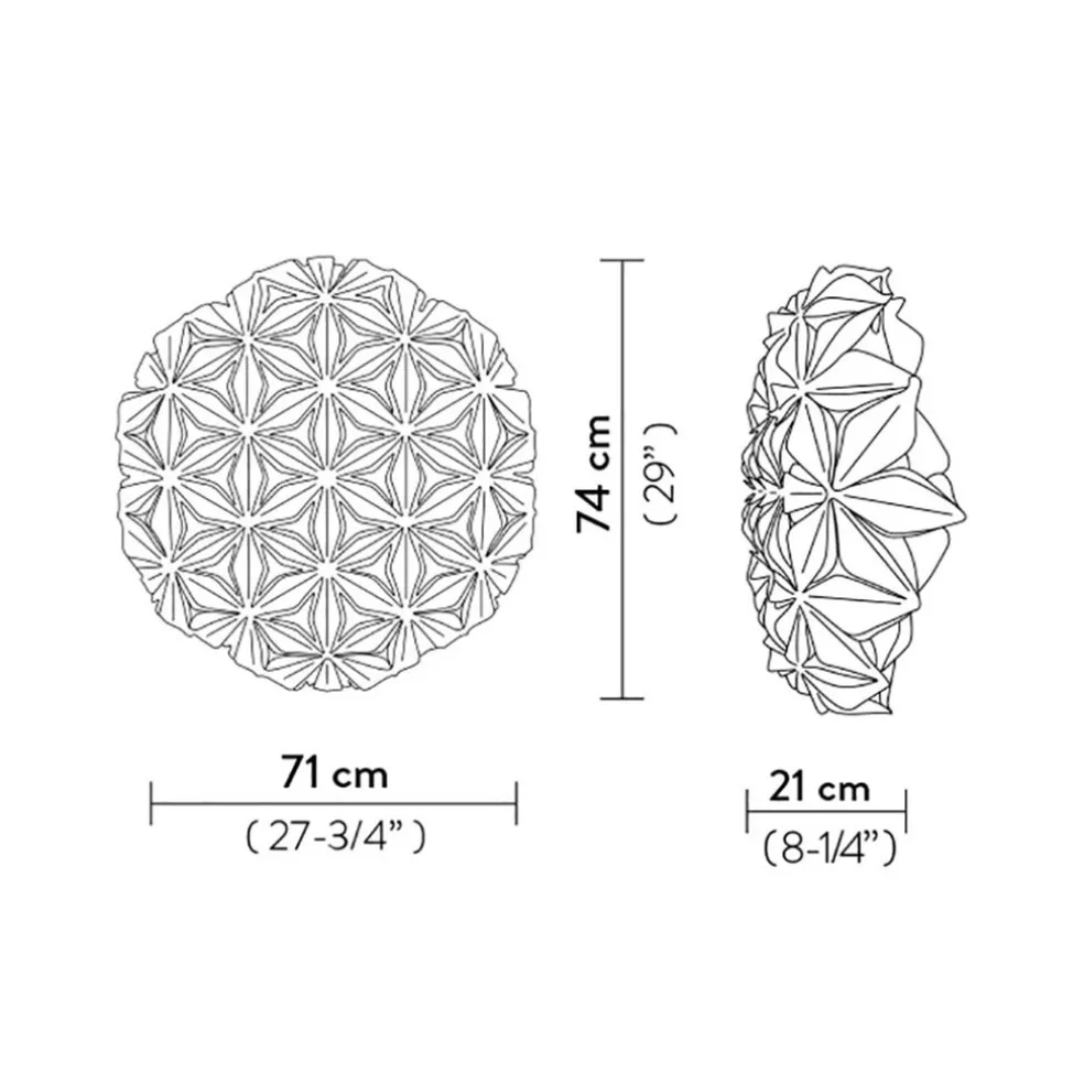 Geïnspireerd op de ‘flower of life’, maakt dat deze plafondlamp een uniek ontwerp heeft waar de bloem mooi is terug te vinden. De design lamp bestaat uit diverse ‘blaadjes’ die samen het geheel vormen. De ronde lamp is zowel als plafond- en wandlamp te gebruiken. De kap wordt gemakkelijk op de bevestiging geplaatst met magneetjes. Plafondlamp La Vie is verkrijgbaar in divere kleuren en wordt geleverd zonder lichtbron (3x E27)