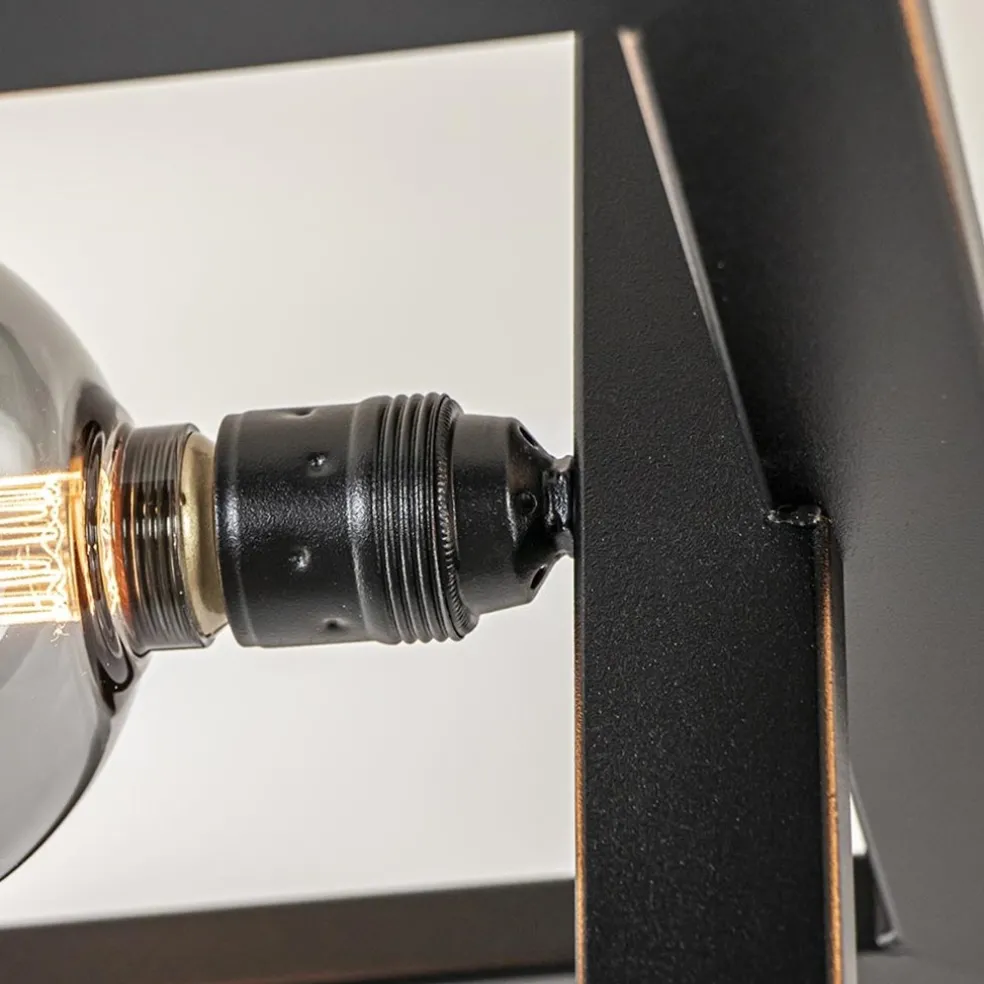 Een stoer design, met de hand vervaardigd op Hollandse bodem. Deze plafondlamp is gemaakt van metaal en prachtig in elkaar gezet. De twee vierkanten zijn haaks op elkaar gelast en zijn beide voorzien van een E27 fitting. Het metalen frame heeft een dikte van 4×2 cm en is afgewerkt met een mat zwarte finish. De design plafondlamp wordt bevestigd met een plaat van 12×12 cm en is dimbaar middels een externe dimmer (exclusief). De lichtbronnen worden niet standaard meegeleverd.