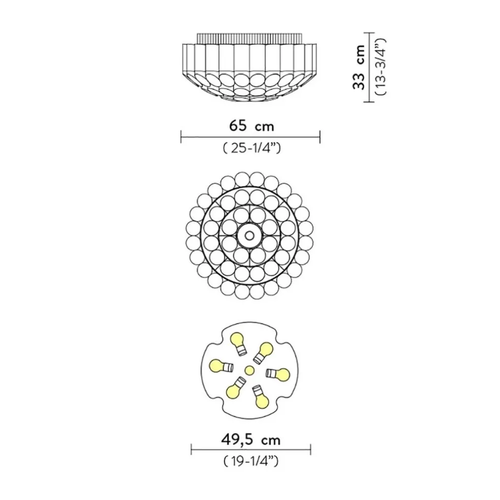Deze grote design plafondlamp is een echte eyecatcher voor het interieur. De lamp heeft een doorsnede van 65 cm en een hoogte van 33 cm. De designlamp vind zijn inspiratie in het Art Deco en bestaat uit lentiflex, wat een soort glaslook geeft, en goldflex, wat de lamp de luxe chique gouden uitstraling geeft. Het design is van Italiaanse komaf en is tot in de puntjes prachtig afgewerkt. Het contrast in de lamp geeft een bijna theatrale look en maakt de lamp prima geschikt voor diverse woonstijlen. De lamp is van binnen voorzien van 6 lichtpunten met een extra punt middenin de lamp. Deze kan dienen als spot zodat de lamp naast diffuus licht ook direct licht geeft.