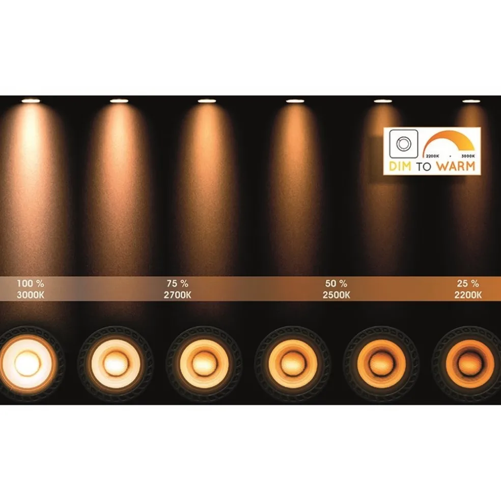 Een ideale plafondspot met hoog sfeergehalte. De ronde opbouwspot is klein, maar groots in effect. De aluminium spot heeft een strak design en is voorzien van een dim to warm functie. Dit houdt in dat wanneer u de spot dimt, deze zowel in kleurtemperatuur als intensiteit dimt. Hier is wel een geschikte dimmer (exclusief) voor nodig. De spot heeft een intensiteit van 820 lumen en een kleurbereik tussen de 2200 en 3000 Kelvin. De LED spot (GU10) is inclusief en heeft een stralingshoek van 40°. Door het kleine formaat is deze witte opbouwspot ideaal voor ruimtes met een laag plafond en kan bijvoorbeeld in een toilet worden opgehangen, of met meerdere in een hal, keuken of slaapkamer.