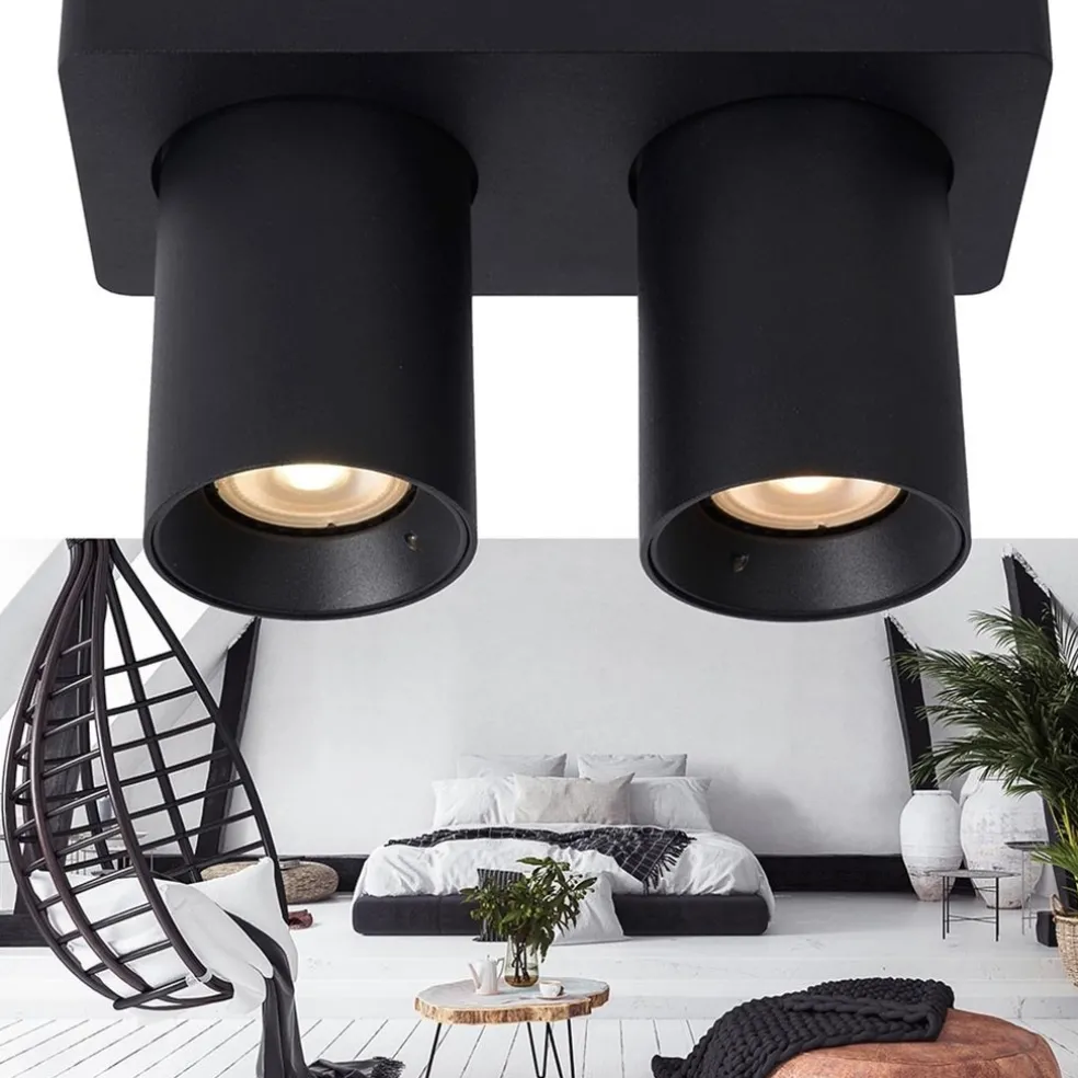 Ideaal in een slaapkamer, hal of keuken. Deze moderne 2-lichts opbouwspot heeft een strakke neutrale afwerking waardoor deze in ieder interieur is toe te passen. De cilindervormige kappen zijn verstelbaar door deze te kantelen en/of draaien. Ideaal wanneer u iets wilt uitlichten. De zwarte opbouwspot heeft nog een extra handige functie, namelijk dim to warm. Dit houdt in dat wanneer u de lamp dimt, deze zowel in kleurtemperatuur als intensiteit dimt. Zo creëert u snel een fijne warme sfeer in huis. Hier is wel een geschikte dimmer (exclusief) voor nodig. De LED spots (2x GU10) zijn inclusief en hebben een intensiteit van 320 lumen, een kleurbereik van 2200-3000 Kelvin en een stralingshoek van 40°. Al met al een zeer fijne en functionele plafondspot.
