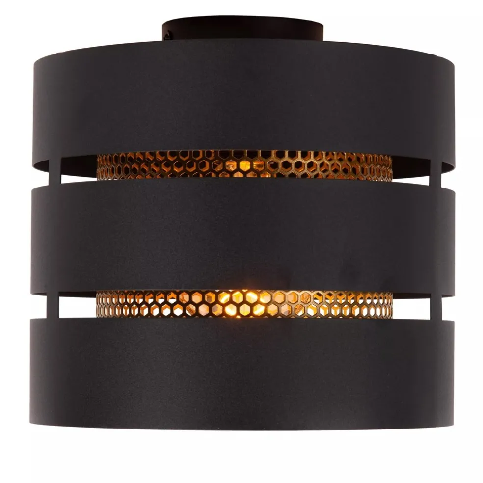 Een stoere plafondlamp die z’n inspiratie vind in de natuur. De binnenste kap is namelijk geïnspireerd op de binnenzijde van een bijenkorf. Dit is dan ook uitgevoerd in het goud zodat de lamp een warme gloed afgeeft aan het interieur. De ronde plafondlamp is volledig gemaakt van metaal en heeft een mat zwarte buitenkap. De combinatie van het zwart en goud maakt de lamp prima geschikt voor diverse woonstijlen. De plafondlamp wordt geleverd zonder lichtbron en is dimbaar middels een externe dimmer (exclusief). Door z’n grootte is de plafondlamp toepasbaar in een ruimte als de hal, slaapkamer of zelfs het toilet.