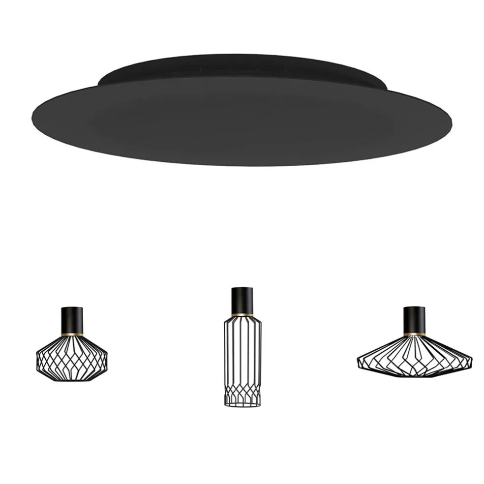Op zoek naar een unieke lamp? Deze hanglamp is onderdeel van een nieuwe collectie die speciaal wordt samengesteld. Het ideale aan dit systeem is dat u zelf kunt bepalen waar u de kappen wilt hangen en met hoeveel. Zo is er de keuze voor een plaat met max 8 snoeren of een plaat met max 12 snoeren. Met de begeleiders kiest u de punten in de ruimte waar de kap komt te hangen. Verder is er ook een ruime keuze aan kappen welke u op de foto kunt terug vinden en kiest u welke lengte snoeren u wenst. Een ideale manier om een unieke hanglamp samen te stellen.