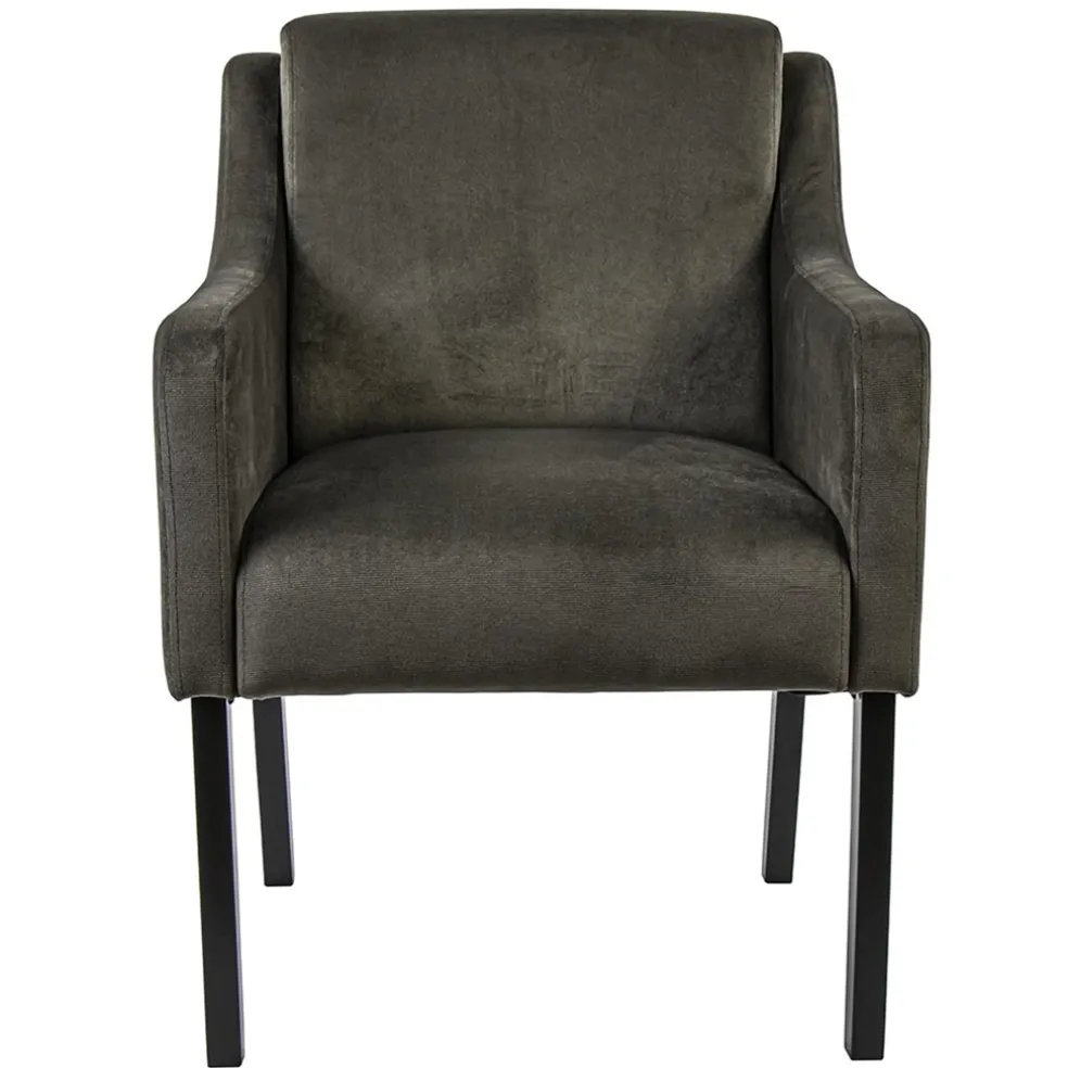Deze stijlvolle eetkamerstoel zorgt ervoor dat een avondje dineren geen probleem is. De stoel heeft een hoogwaardig zitcomfort en biedt door de armleuning een fijne ondersteuning. De armstoel heeft een stoffen zitting die is uitgevoerd in het velours bruin. De poten zijn van hout en uitgevoerd in het zwart. Deze combinatie maakt de eettafelstoel prima geschikt voor diverse woonstijlen, van landelijk tot chique of klassiek.