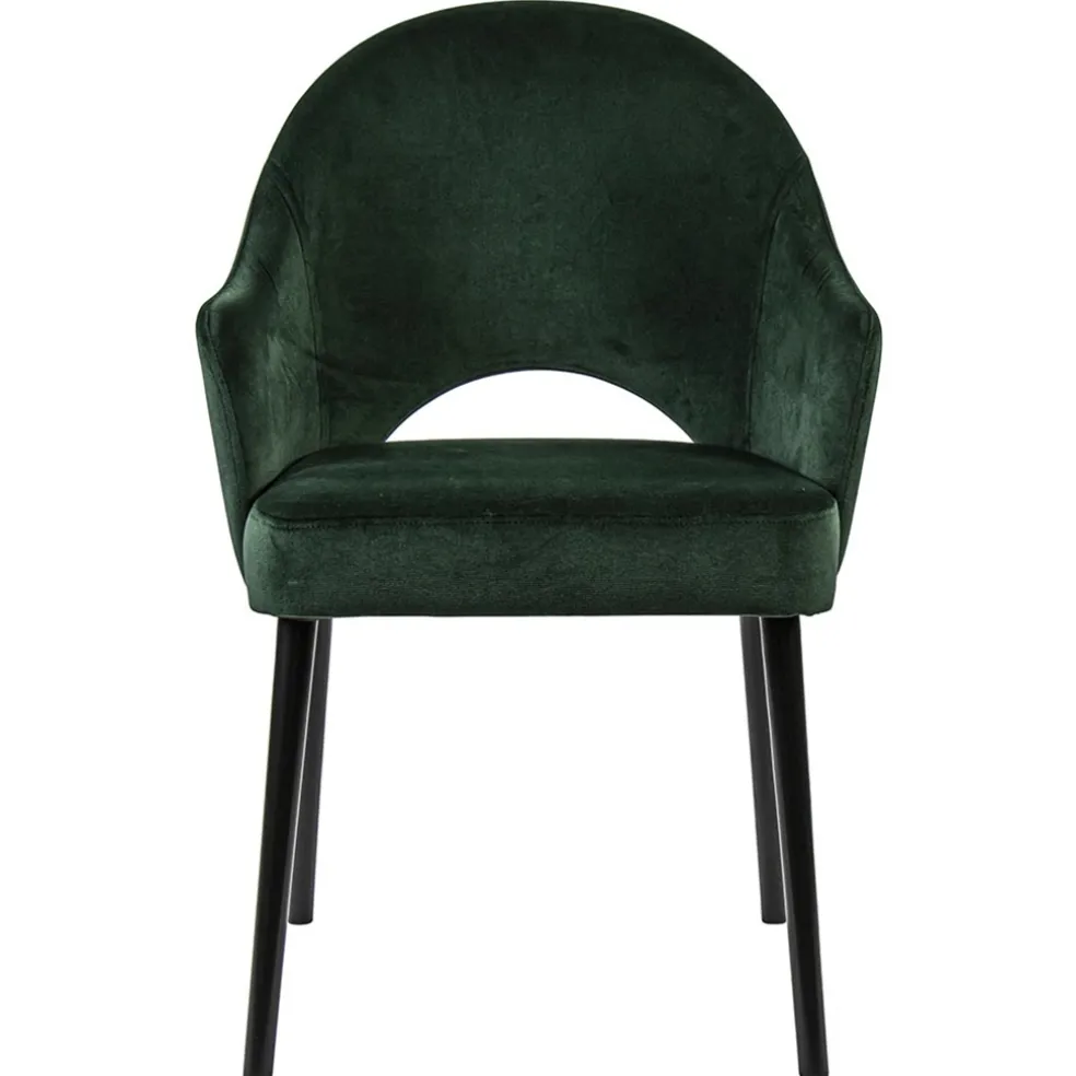 Stoffen eetkamerstoel velours groen met zwarte houten poot