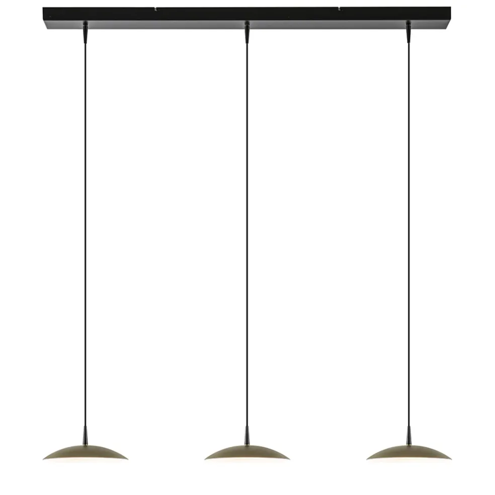 Een simplistisch design, maar een groots effect. Deze design hanglamp is voorzien van metalen schotels die zijn uitgevoerd in het mat goud. Dit combineert mooi met het mat zwarte armatuur. De schotels zijn ieder voorzien van een LED lichtpunt en zijn naar wens op hoogte te hangen. De LED hanglamp is dimbaar middels een externe dimmer en dimt ook in kleur (dim to warm). De hanglamp mat zwart met mat goud past mooi in een design of strak klassiek interieur boven de eettafel.