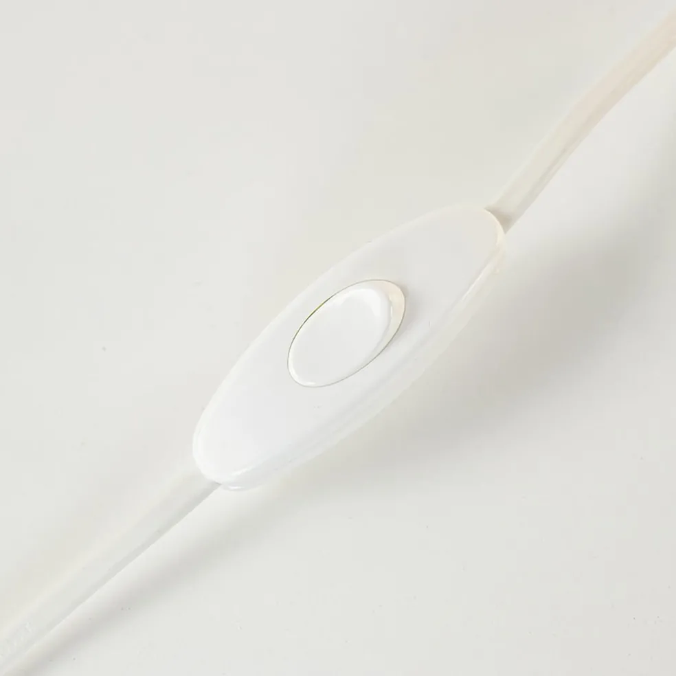 Sfeervol op een dressoir, kast of het nachtkastje. Deze ronde tafellamp is gemaakt van opaal glas wat een sfeervol diffuus licht verspreid. De witte bol wordt ondersteund door metalen pootjes en is voorzien van een wit snoer met een lengte van 135 cm. De knipschakelaar bevindt zich op 40 cm in het snoer. De tafellamp witte bol 20 cm wordt geleverd zonder lichtbron (E27).