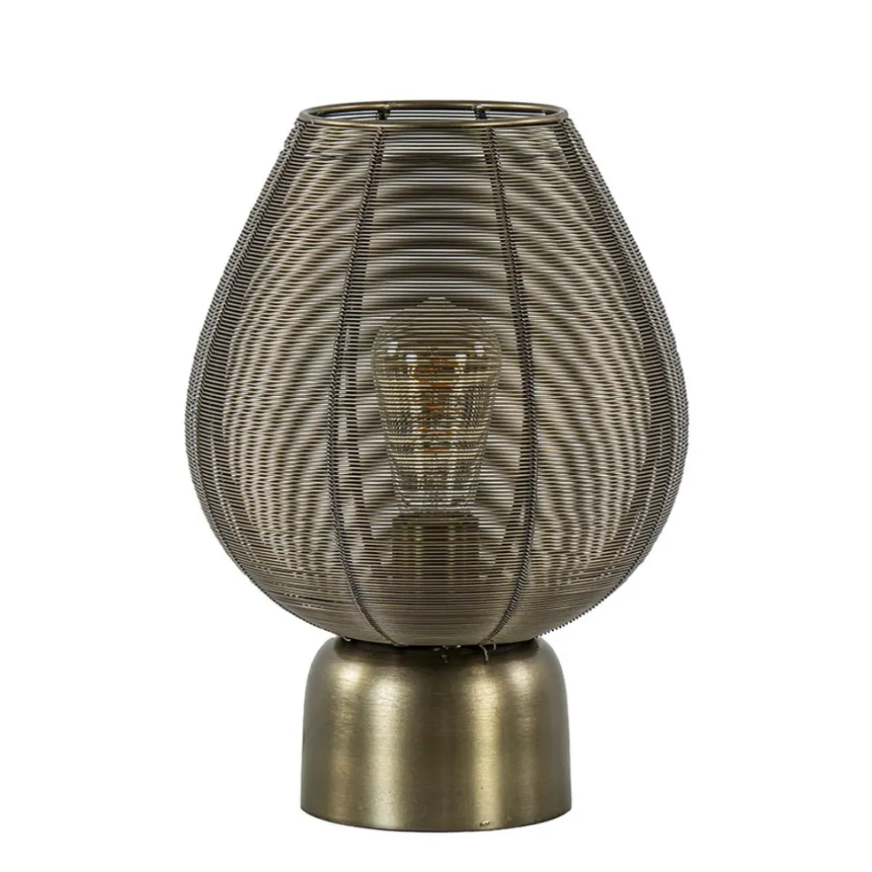Deze leuke tafellamp Suneko van Light and Living heeft een mooie sierlijke vorm. De tafellamp bestaat uit langs elkaar geweven draden in een mooie druppelvormig design. De tafellamp is gemaakt van metaal in de kleur antiek brons. Deze kleur zien wij steeds vaker terugkomen in de woonstijlen van nu. De tafellamp heeft een snoer van 180 cm en de schakelaar bevindt zich op 85 cm van het armatuur. De tafellamp wordt exclusief lichtbron geleverd.