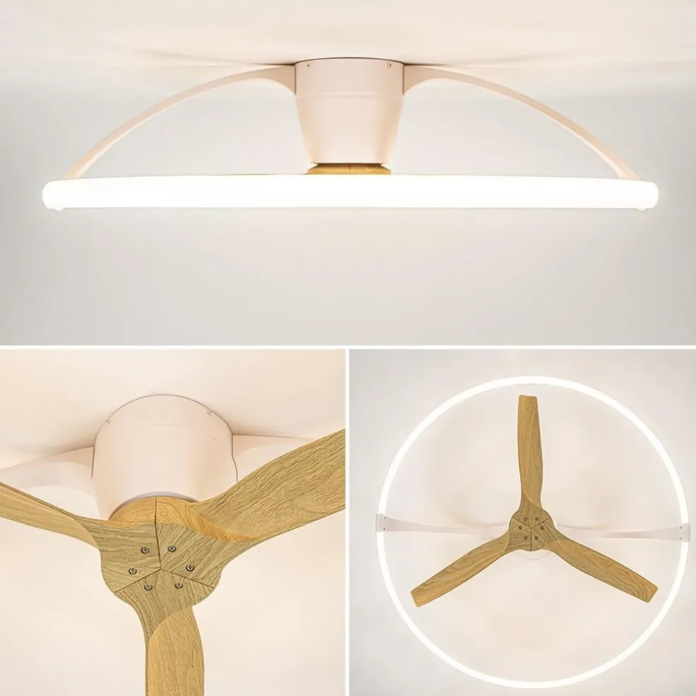 Design meets function. Deze moderne plafondventilator is zowel strak van design als zeer functioneel door zijn vele opties. De plafondlamp en ventilator in één zijn gemakkelijk te bedienen dmv de meegeleverde afstandsbediening. Daarnaast zijn ze ook beide te bedienen dmv een app op de smartphone. Deze wordt met Bluetooth gemakkelijk gelinkt aan de plafondventilator. Bedien zo vanaf uw bank of bed de LED verlichting of de ventilator apart van elkaar. Schakel makkelijk tussen de diverse standen of stel het helemaal naar eigen wens in. De geïntegreerde LED verlichting is dimbaar en kan worden ingesteld qua temperatuur, variërend van warm wit tot koel wit. De ventilator heeft een zomer en winter stand zodat deze het hele jaar door kan worden gebruikt. Het moderne design geeft de plafondventilator een open structuur waardoor er een goede luchtverplaatsing kan plaats vinden en de plafondlamp ook een eyecatcher voor de ruimte is.