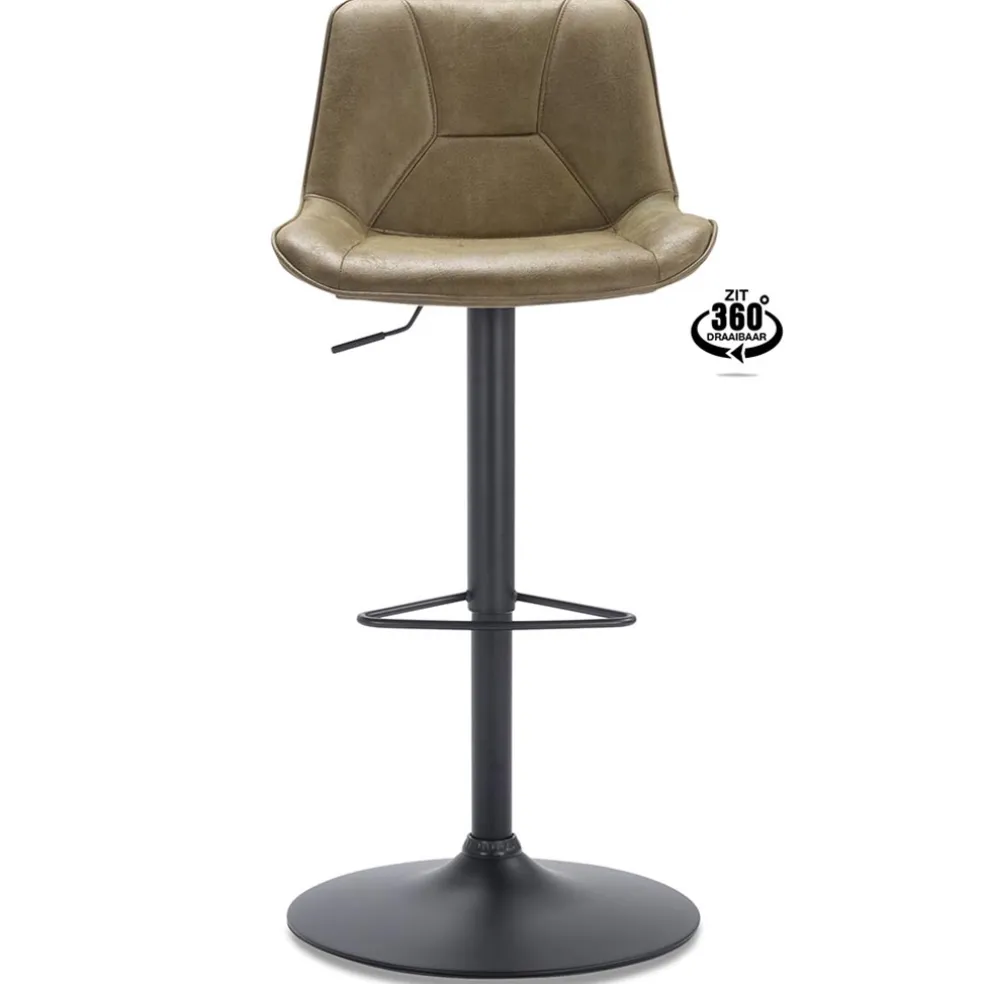 Een perfecte barkruk met een hoog zitcomfort. De barkruk heeft een industriële uitstraling en is van meerdere gemakken voorzien. Zo kan de zitting 360° draaien en is deze in hoogte verstelbaar. Ideaal om zo voor iedereen in huis passend te maken aan de bar of het kookeiland. De hoogte van de zitting is verstelbaar tussen de 60 en 80 cm. De metalen poot is uitgevoerd in het zwart en halverwege voorzien van een voetensteun voor extra comfort. De zitting is gemaakt van microleder. Dit is 60% echt leder en is uitgevoerd in de kleur mos groen. De rugleuning is voorzien van een handgreep waarmee u gemakkelijk de kruk naar achteren kunt schuiven.