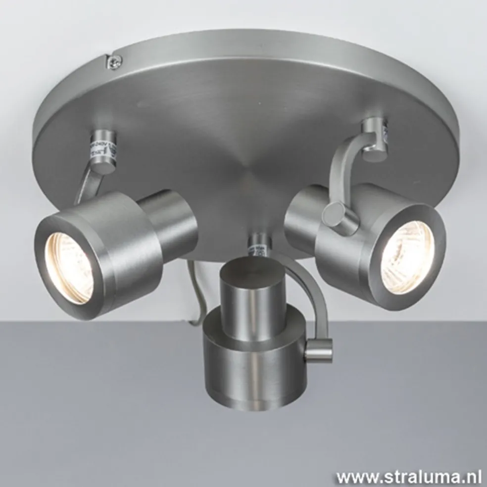 Moderne plafondspot uitgevoerd in mat staal. Deze plafonnière komt uit de serie ‘Alto’, een mooie strakke serie opbouwspots in diverse uitvoeringen. De moderne spots zijn draaibaar en kantelbaar. Ideaal voor het uitlichten van een donkere hoek of lijst aan de muur. Door de stalen uitvoering is deze 3-lichts spot uitstekend voor een modern interieur.