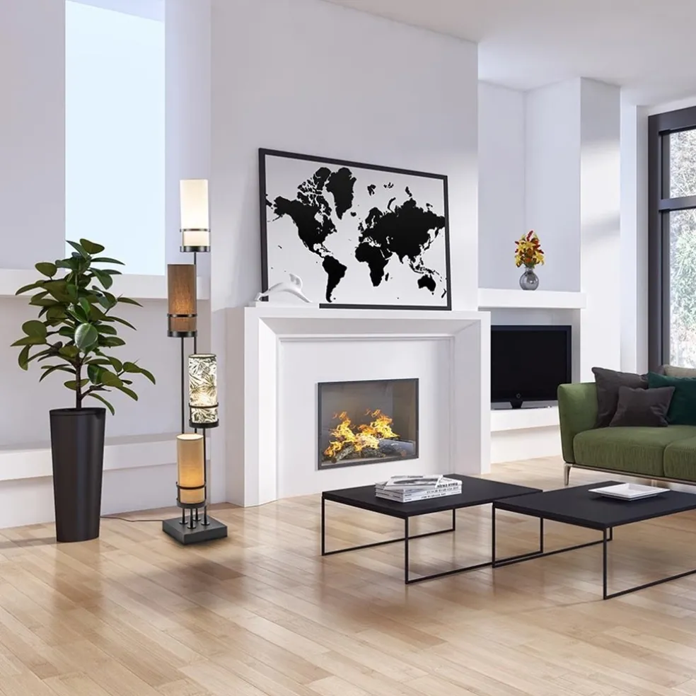 Vloerlamp 4L zwart + cilinder kappen bruin