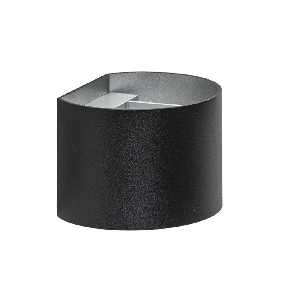 Een kleine moderne wandlamp met een groots effect. De wandlamp is volledig van metaal en afgewerkt met een mat zwarte finish. Bijzonder aan de lamp is de binnenzijde, deze is namelijk voorzien van een matte zilver/grijze finish. De ronde wandlamp bestaat uit twee delen, de zwarte kap en de grijze bevestiging. Mooi hieraan is dat de bevestiging op de wand wordt vastgezet en het zwarte kapje er overheen wordt geschoven. Zo zijn er geen schroefjes zichtbaar en is de kap helemaal egaal. Daarnaast kunt u nog zelf bepalen hoe u de wandlamp wilt laten verlichten. Deze werkt namelijk als up- en downlighter wat een sfeervol zandloper effect creëert op de wand. Maar dmv de klepjes aan de binnenzijde kunt u er ook voor kiezen om alleen naar boven of onder te verlichten. Zo kunt u spelen met de verlichting en deze naar wens instellen. De ronde wandlamp heeft geen snoer en dient daarom direct op een stroompunt te worden aangesloten.