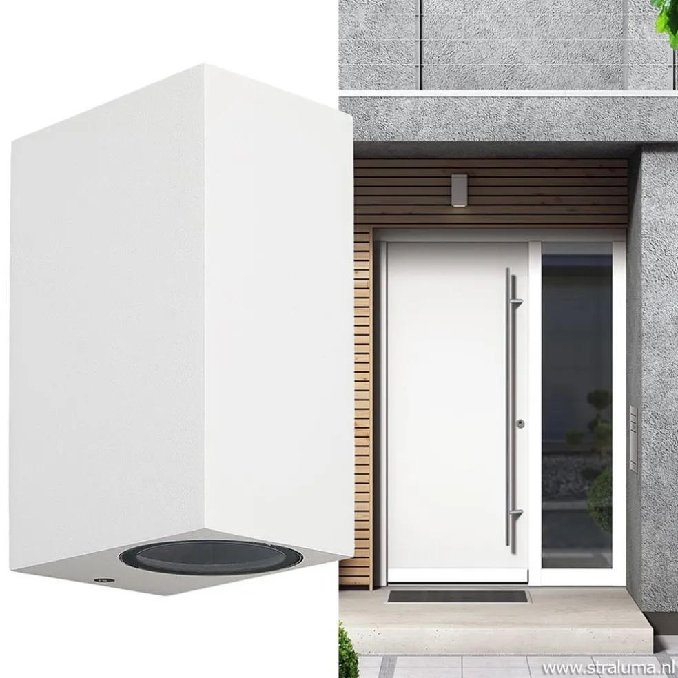 Maak het genieten van uw tuin nu nog fijner met deze sfeervolle wandspot. De witte wandlamp is gemaakt van aluminium en heeft een strak en minimalistisch design. Het mooie aan de buiten wandlamp, is dat deze is voorzien van een up- en downlighter wat een sfeervol zandloper effect creëert op de muur of schutting. De lichtbronnen (2x GU10) zijn exclusief zodat u zelf kunt kiezen wat voor warmte en sfeer u wenst in uw tuin. Het witte buitenspotje is IP54 goedgekeurd en weerbestendig -10° tot +45°C.