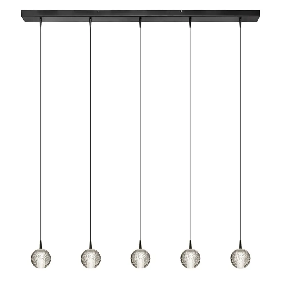 5-Lichts LED eettafelhanglamp helder glazen bollen