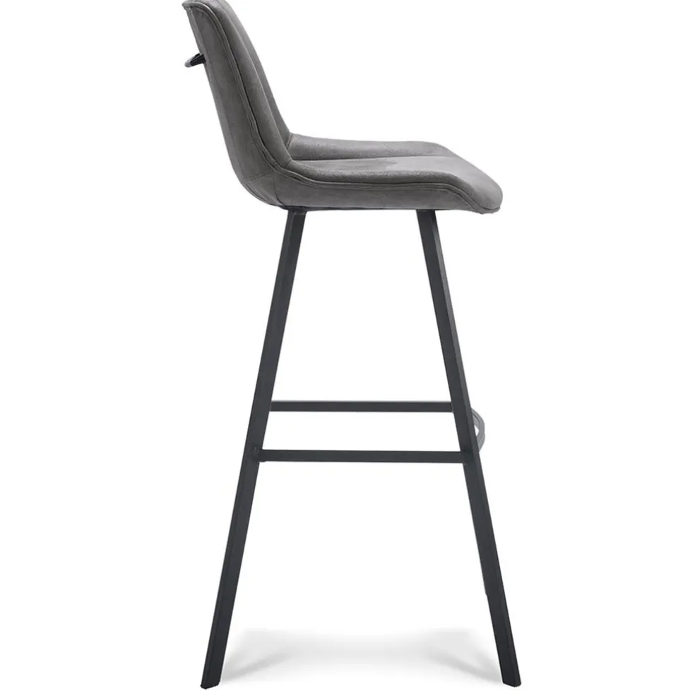 Barkruk met microleder zitting graphite en zwart metalen poot