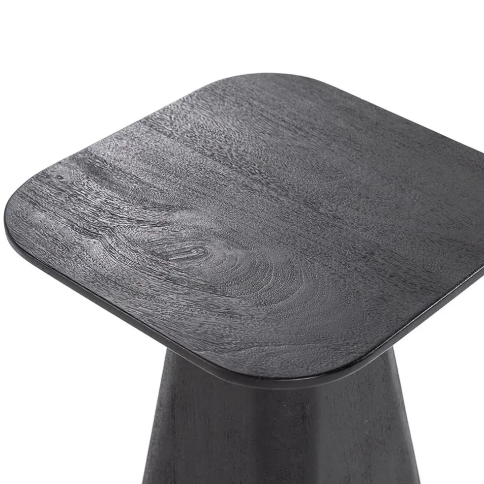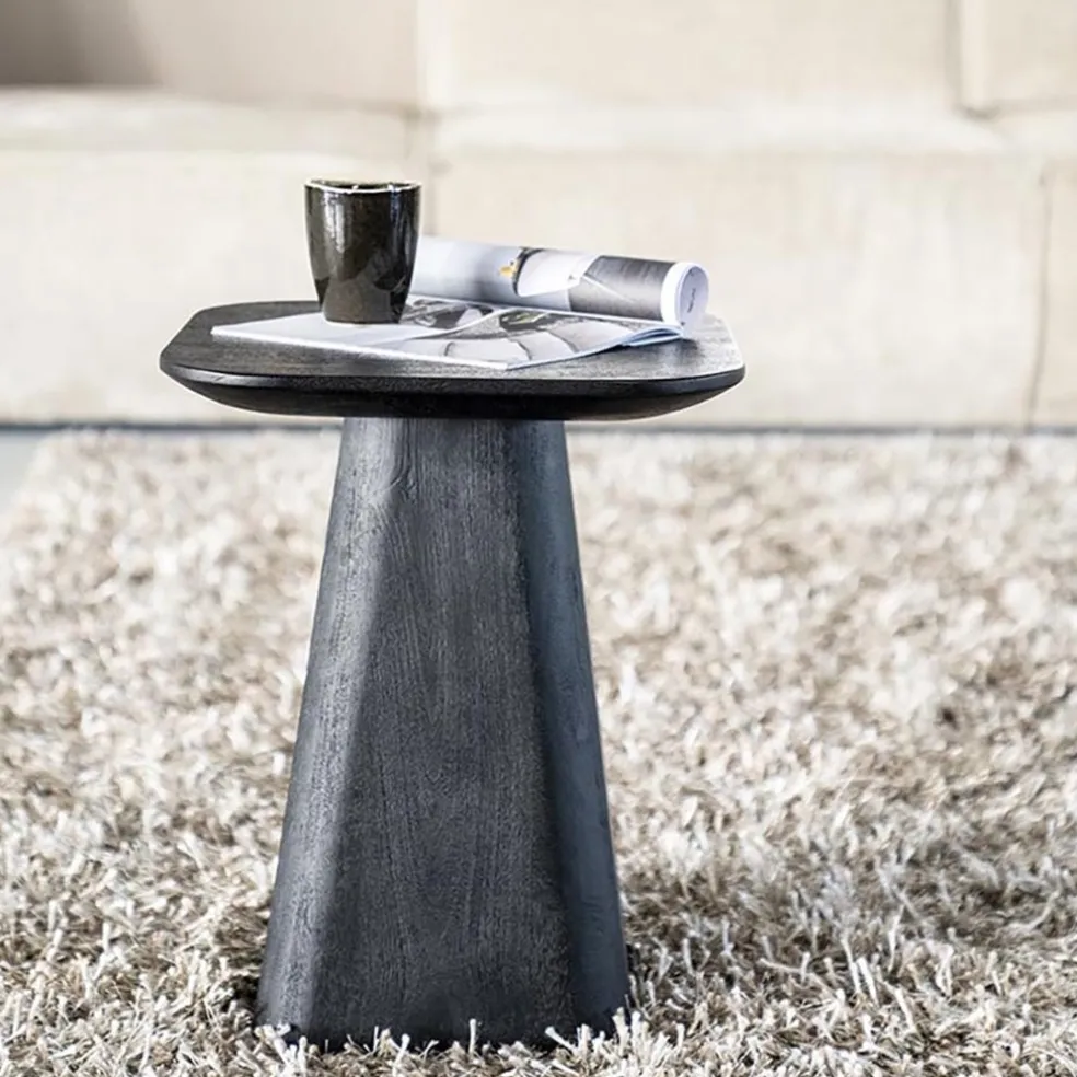 Stoere bijzettafel van mangohout en is afgewerkt met een warme coating. Het mangohout heeft verschillende kleurschakeringen en heeft oneffenheden in het blad. Dit geeft de bijzettafel een stoer uiterlijk. De bijzettafel is zwart. De bijzettafel komt ook een warme bruine kleur en in verschillende formaten.