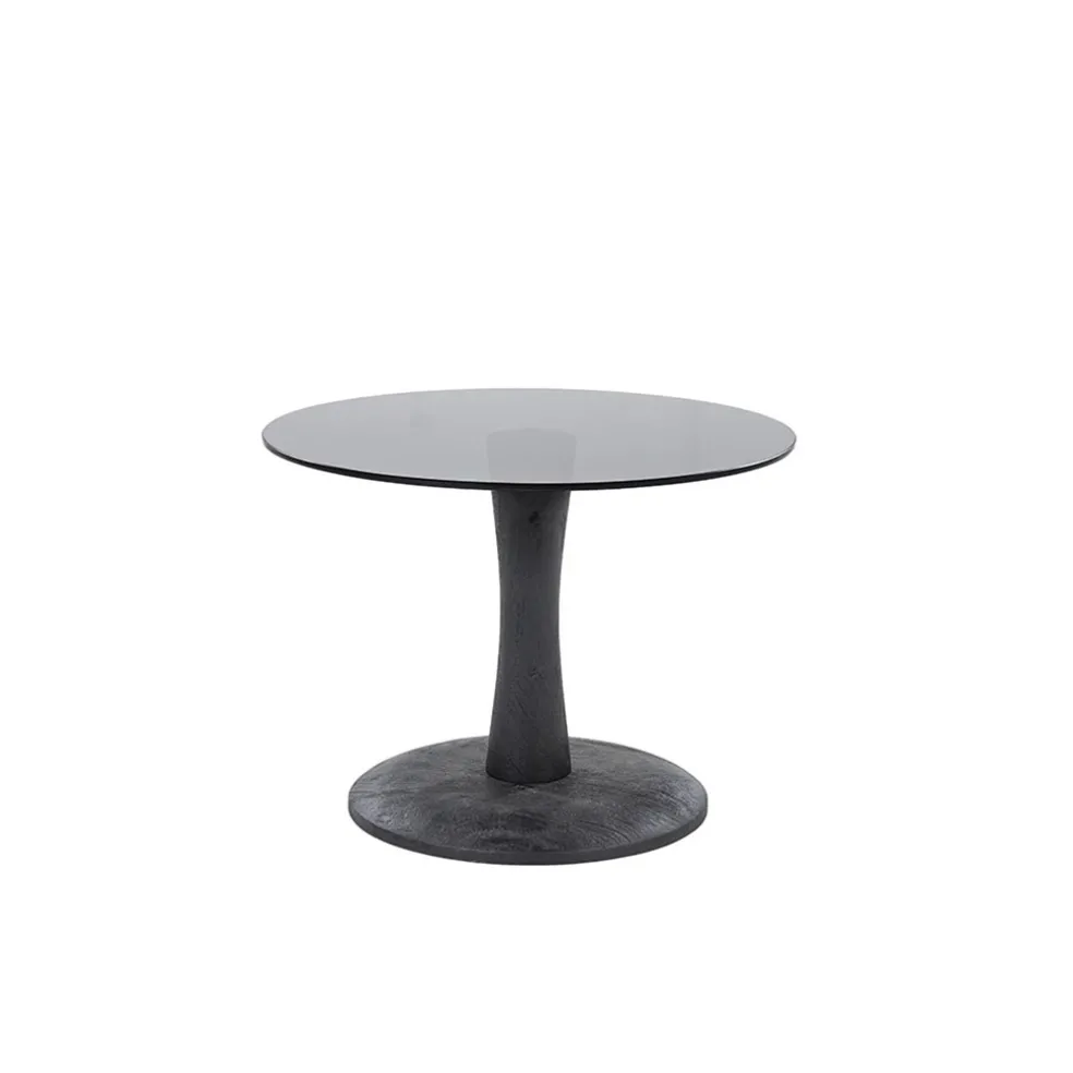 Bijzettafel boogie van By-Boo in het zwart. De tafel is uitgevoerd in hout met glas en laat mooi de nerven van het hout zien en voelen. Het grijze glazen blad is ideaal in gebruik. Eenvoudig met een vochtige doek af te nemen en hij ziet er weer stralend uit. Leuke tafel om als groepje te combineren met andere tafels maar voor de kleinere woonkamers ook single een mooie tafel.