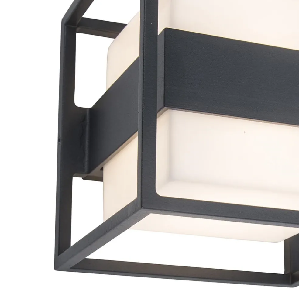 Deze donker grijze kubusvormige buitenlamp met geïntegreerd LED is een echte eye-catcher door zijn moderne uitstraling. Het warme witte licht schijnt in alle richtingen wat een mooi effect geeft. Doordat de behuizing helemaal dicht is, is de buitenlamp IP54 goedgekeurd. Een mooie buitenlamp voor bij de voordeur, de schuur of in een overkapping.