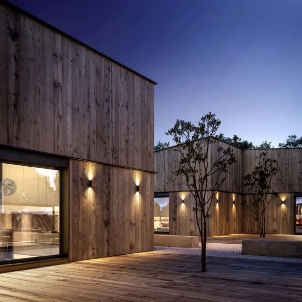 Een prachtige wandlamp voor aan de schuur, schutting of de woning zelf. De buitenlamp is uitgevoerd in het donker grijs met houtlook en fungeert als up en downlighter. De rechthoekige wandlamp is boven en onder afgewerkt met een glasplaat waardoor de lamp goed afsluit. Dit zorgt dan ook dat de buitenlamp IP65 is goedgekeurd. De buitenlamp zorgt voor mooi strijklicht op de ondergrond en geeft wat extra sfeer aan het buitenleven.