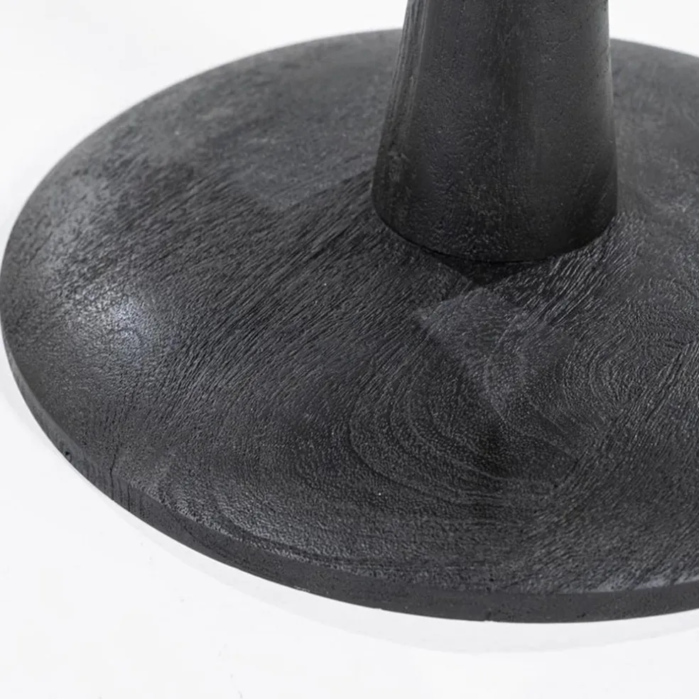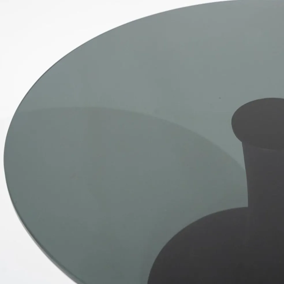 Trendy met een retro twist. Deze ronde eettafel heeft een glazen plaat met een doorsnede van 130 cm. Het glas is uitgevoerd in het zwart. Dit matcht mooi bij de robuuste zwarte mango houten voet. Door het glas krijgt de tafel een ruimtelijke look en houdt het de ruimte luchtig en open.