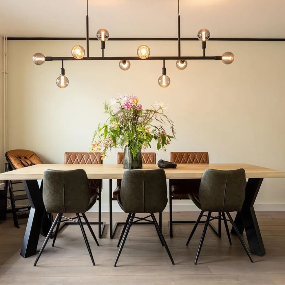 Grote 10-lichts eettafelhanglamp zwart exclusief lichtbronnen