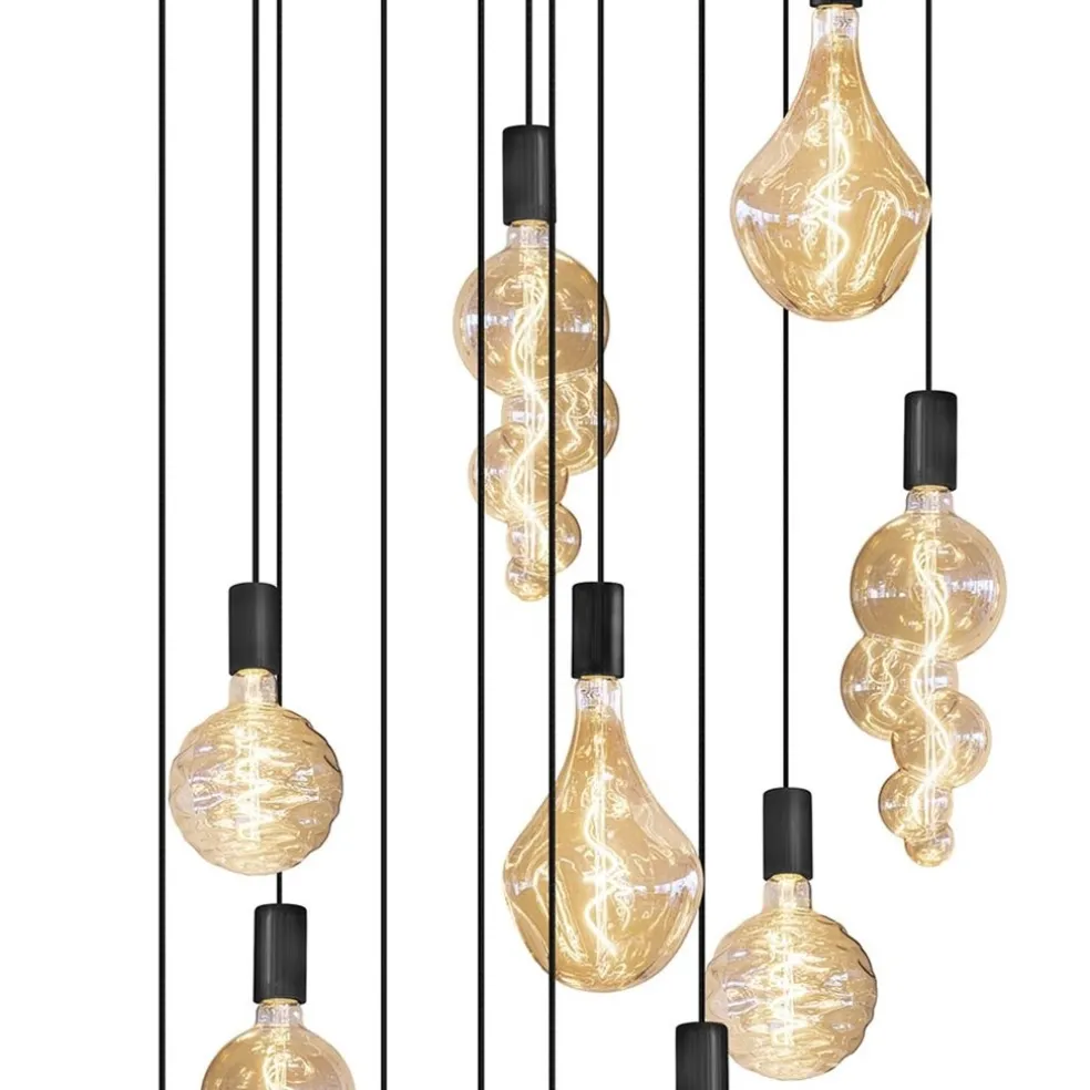 Grote 12-lichts videlamp mat zwart met zwarte pendels