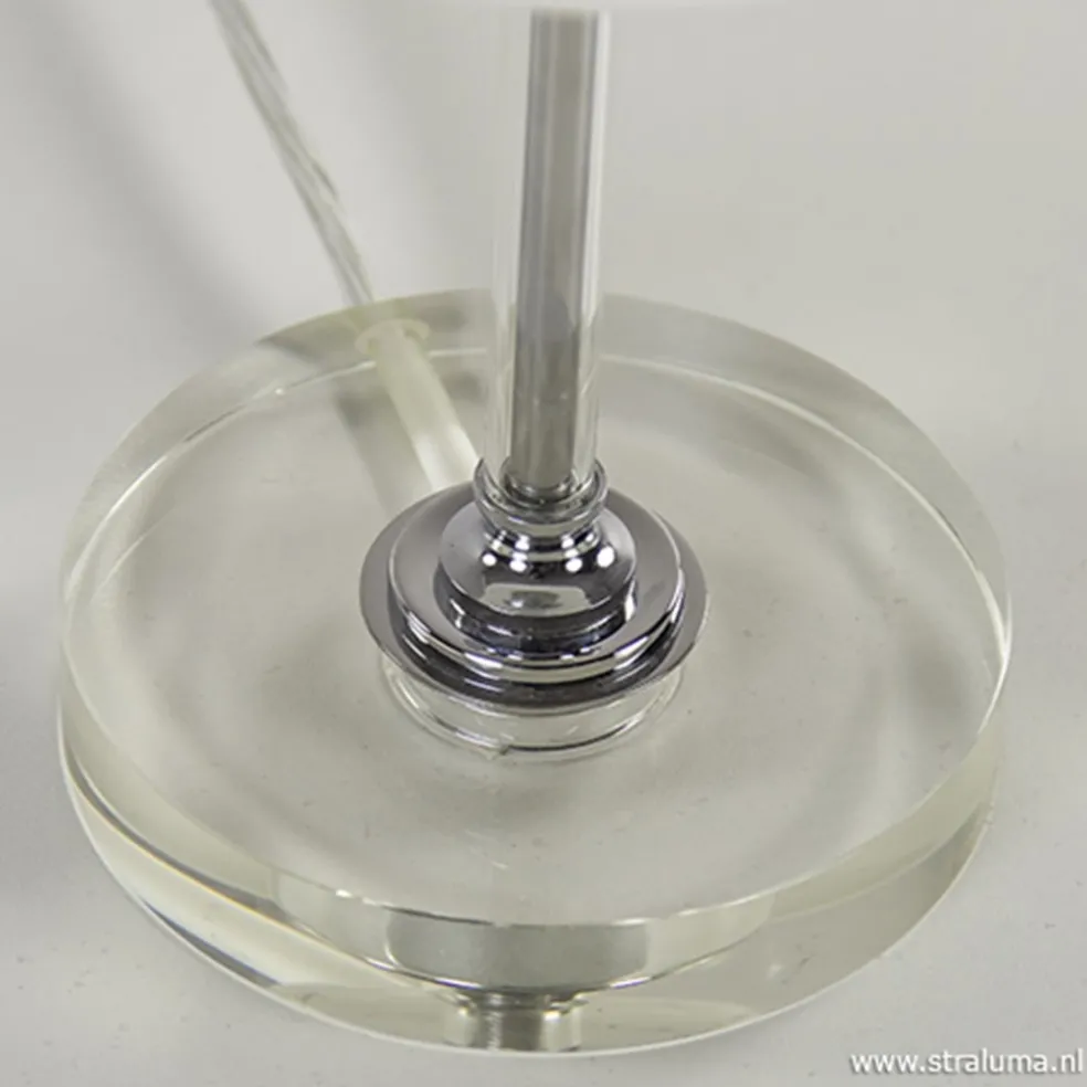 Een leuk sfeervol tafellampje, deze glazen lamp met chroom. De lamp heeft een transparant glazen voet die overloopt in de chromen stang. De kap is van opaal glas wat een fijne en zachte verlichting maakt. De moderne tafellamp is te dimmen in 4 stappen door het chroom aan te raken, de lamp is namelijk voorzien van een touchdimmer. De juiste sfeer creëren is dus geen probleem. Leuk op het dressoir of de kast, maar ook handig op uw nachtkastje.