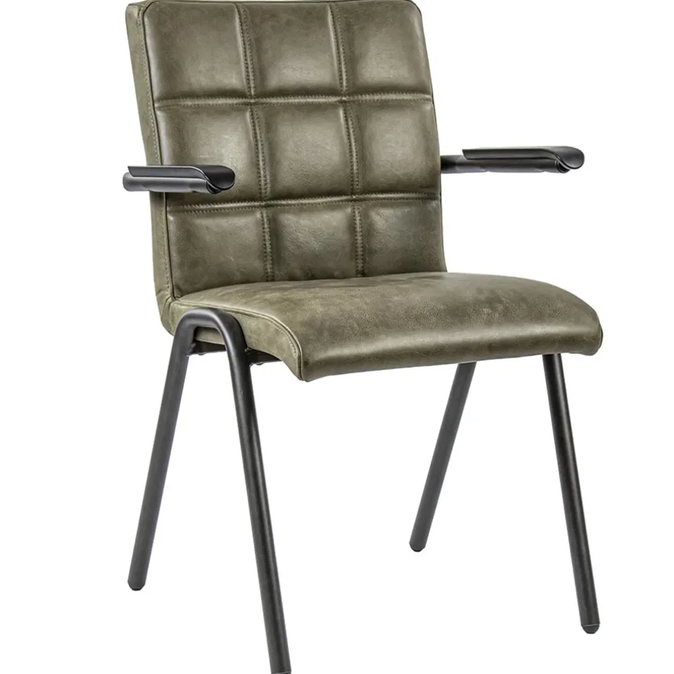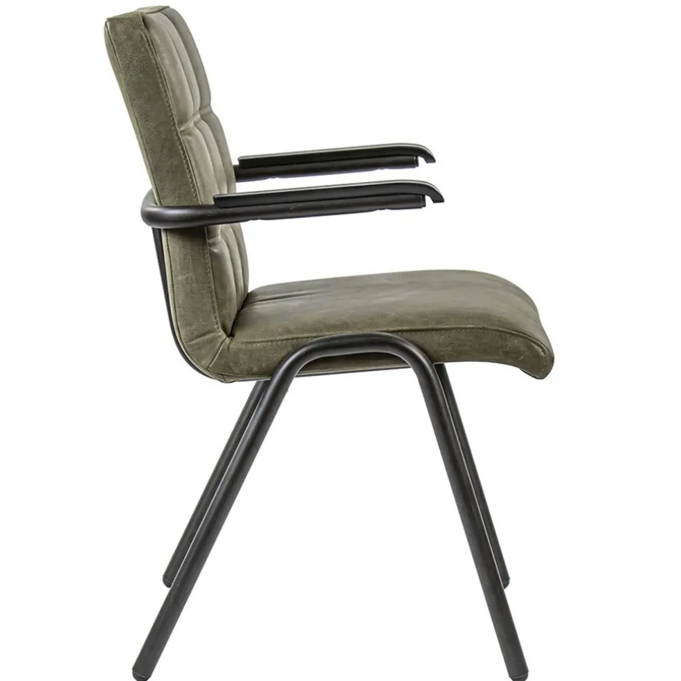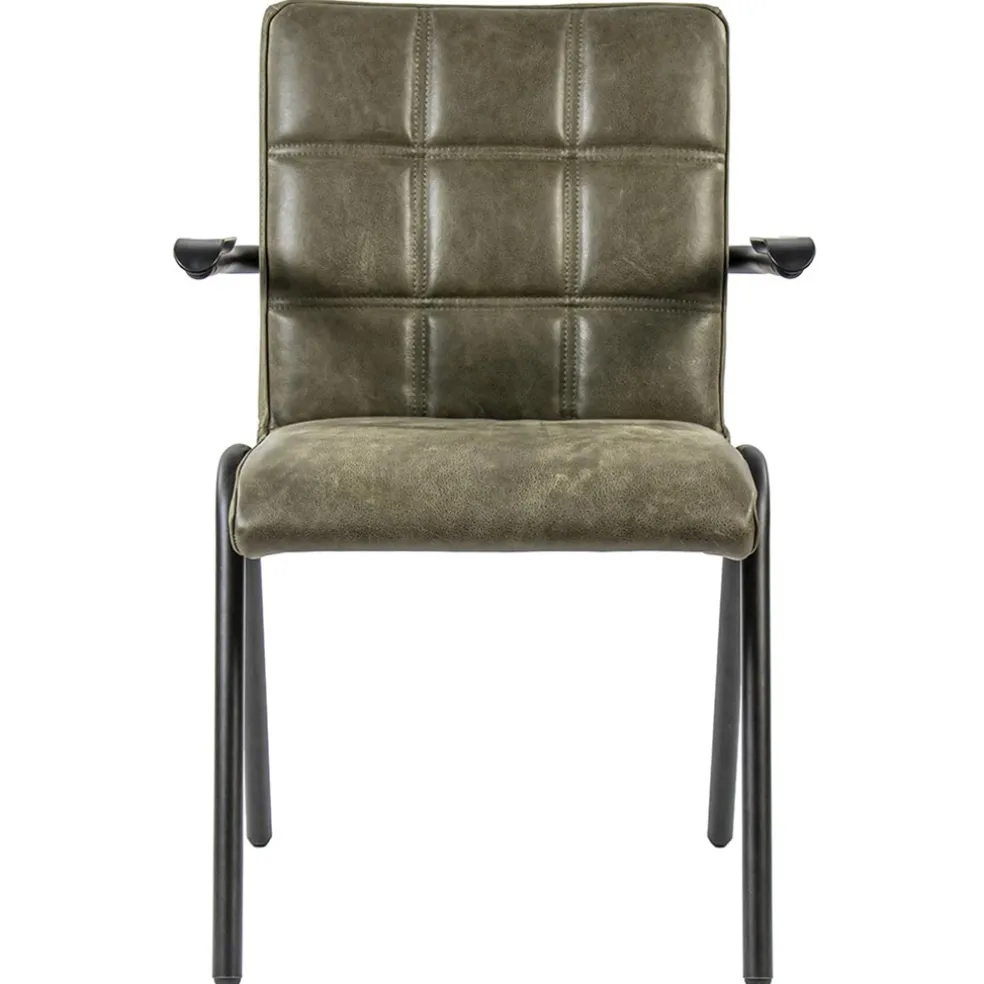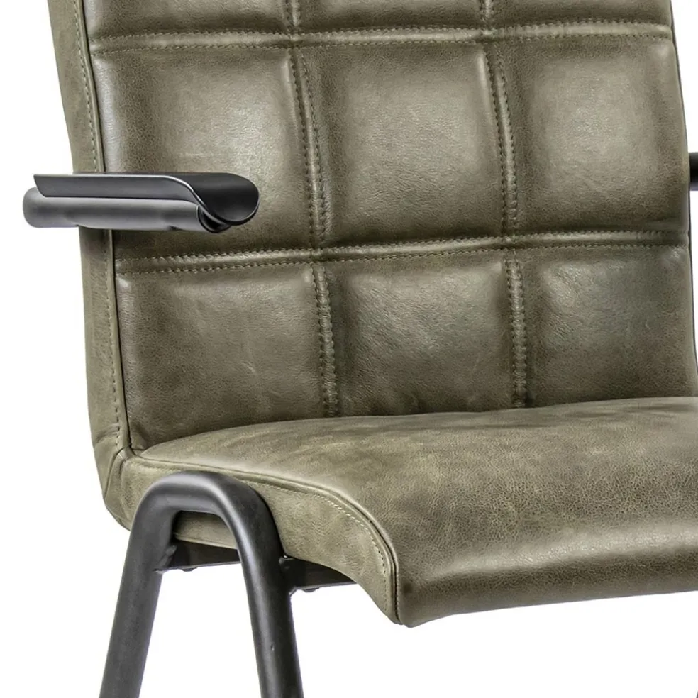Lederen armstoel olijf groen met zwart metalen pootjes