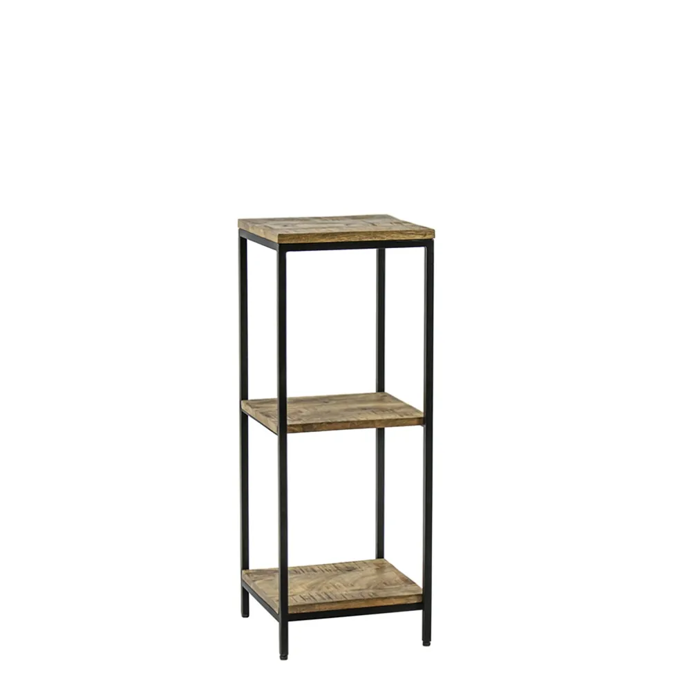 Dit kastje is een leuke toevoeging aan het interieur. Het vierkante kastje bestaat uit een zwart metalen frame met mango houten planken. Deze combinatie geeft het kastje een stoere en robuuste look die mooi is toe te passen in diverse woonstijlen. Het kastje is in 3 maten verkrijgbaar en zijn ook leuk als set te combineren.