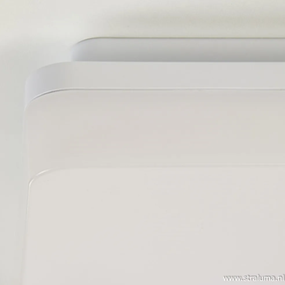 Een moderne basic plafonnière die geschikt is voor meerdere ruimtes in huis. De LED lamp past prima in de hal of de keuken, maar kan vanwege zijn spatwaterbestendigheid (IP44) ook perfect in de badkamer. De kunststof plafondlamp heeft een vierkante vorm met afgeronde hoeken en loopt naar het plafond iets smaller af.