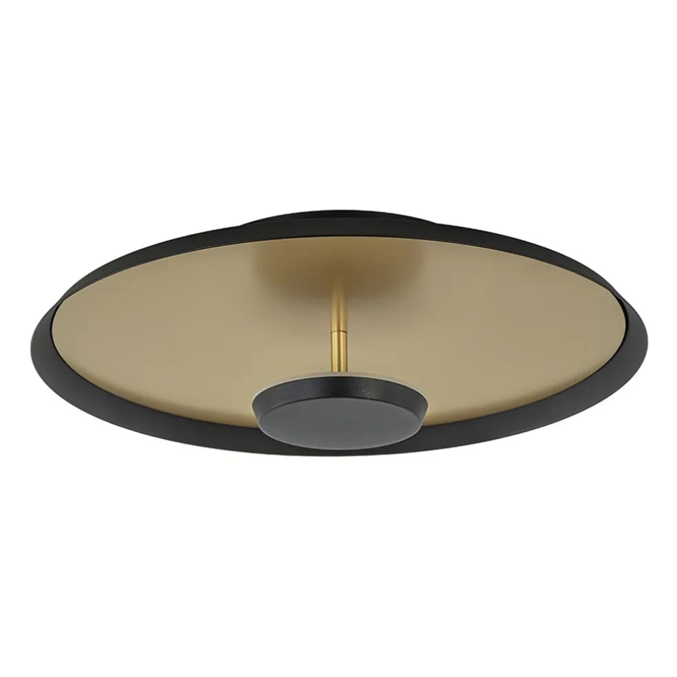 Deze mooie plafondlamp met warme uitstraling is super stoer. De metalen plafondlamp heeft een mat zwarte buitenkant en een gouden binnenkant. Doordat de LED verlichting naar boven schijnt wordt het gereflecteerd door de goudkleurige schaal. De gouden binnenkant heeft de lamp een super warme en sfeervolle uitstraling. Door het lichte metaal is de lamp geschikt voor ieders plafond. Stijlvol, sfeervol en strak, echt een interieur topper.